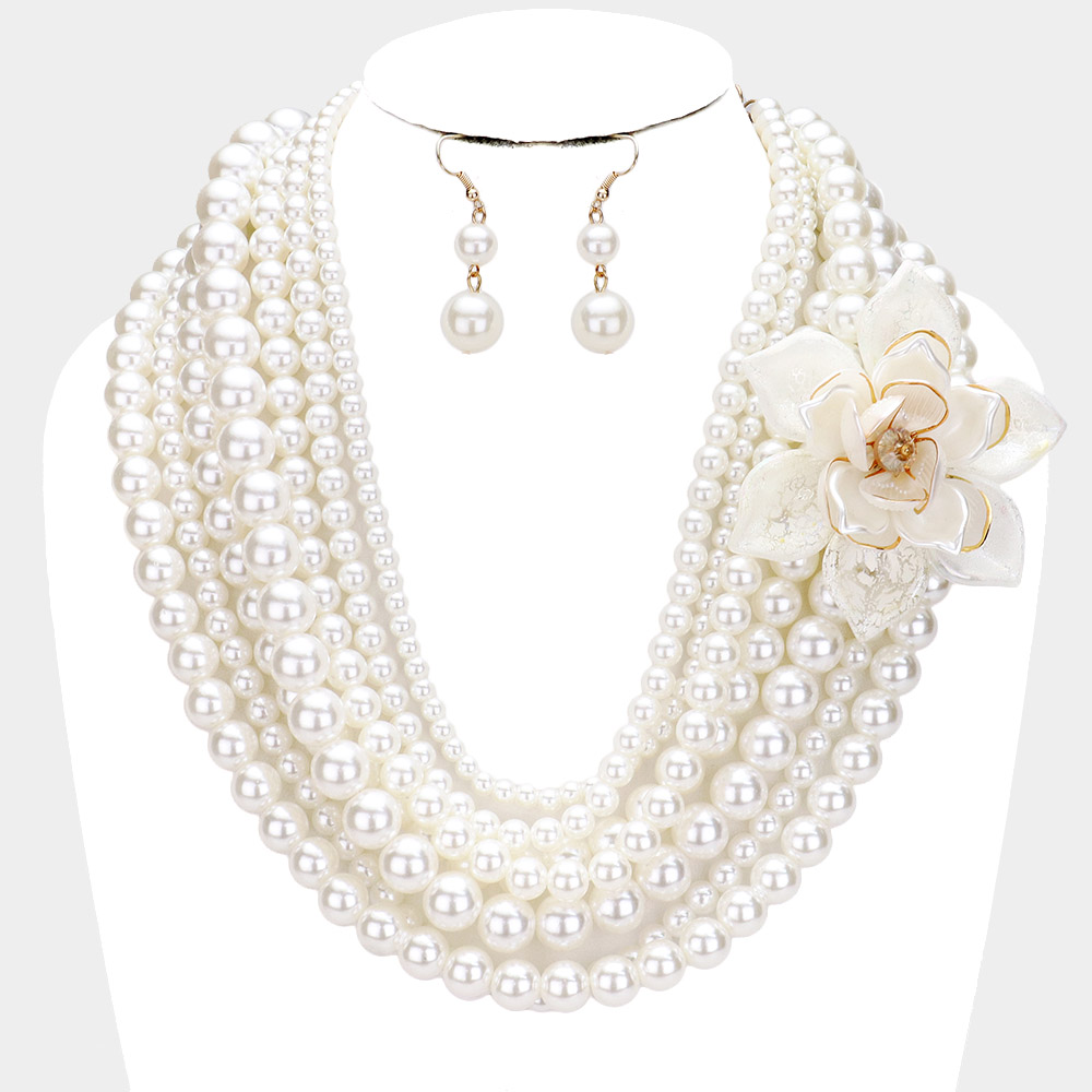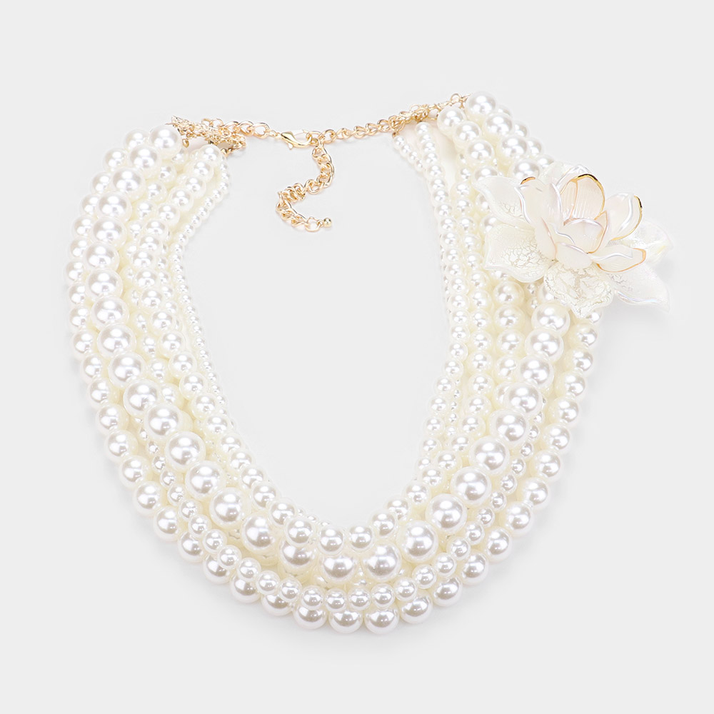 Elegant Multi Layered Flower Strand Pearl Necklace