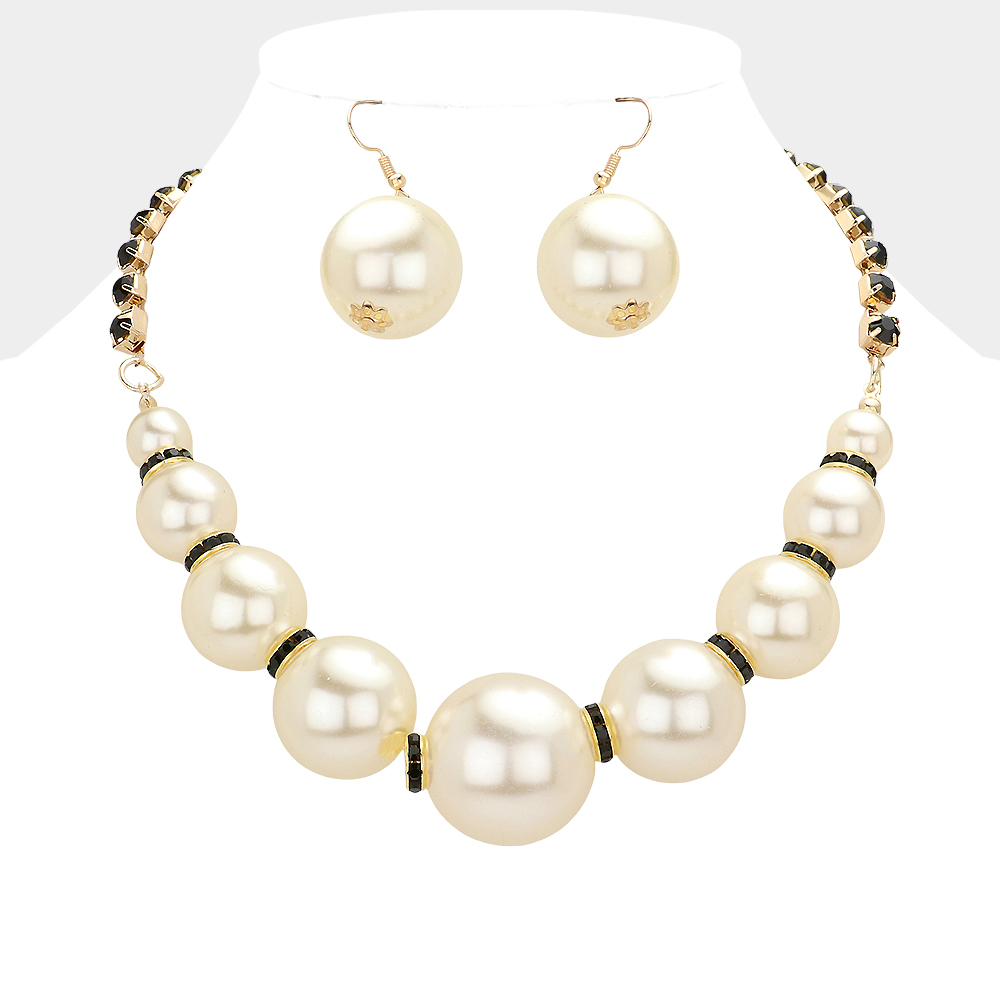 White Gold Dipped CZ Stone Pearl Embellished Geometric Earrings