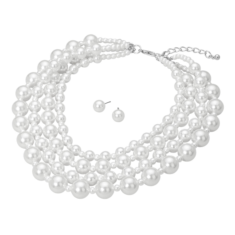• Elevate your style with this Layered Pearl Necklace and Earring Set featuring multi-strand layers that create a timeless statement look. Perfect for weddings, galas, or formal occasions, this classic design adds sophistication and radiant charm to any ensemble.