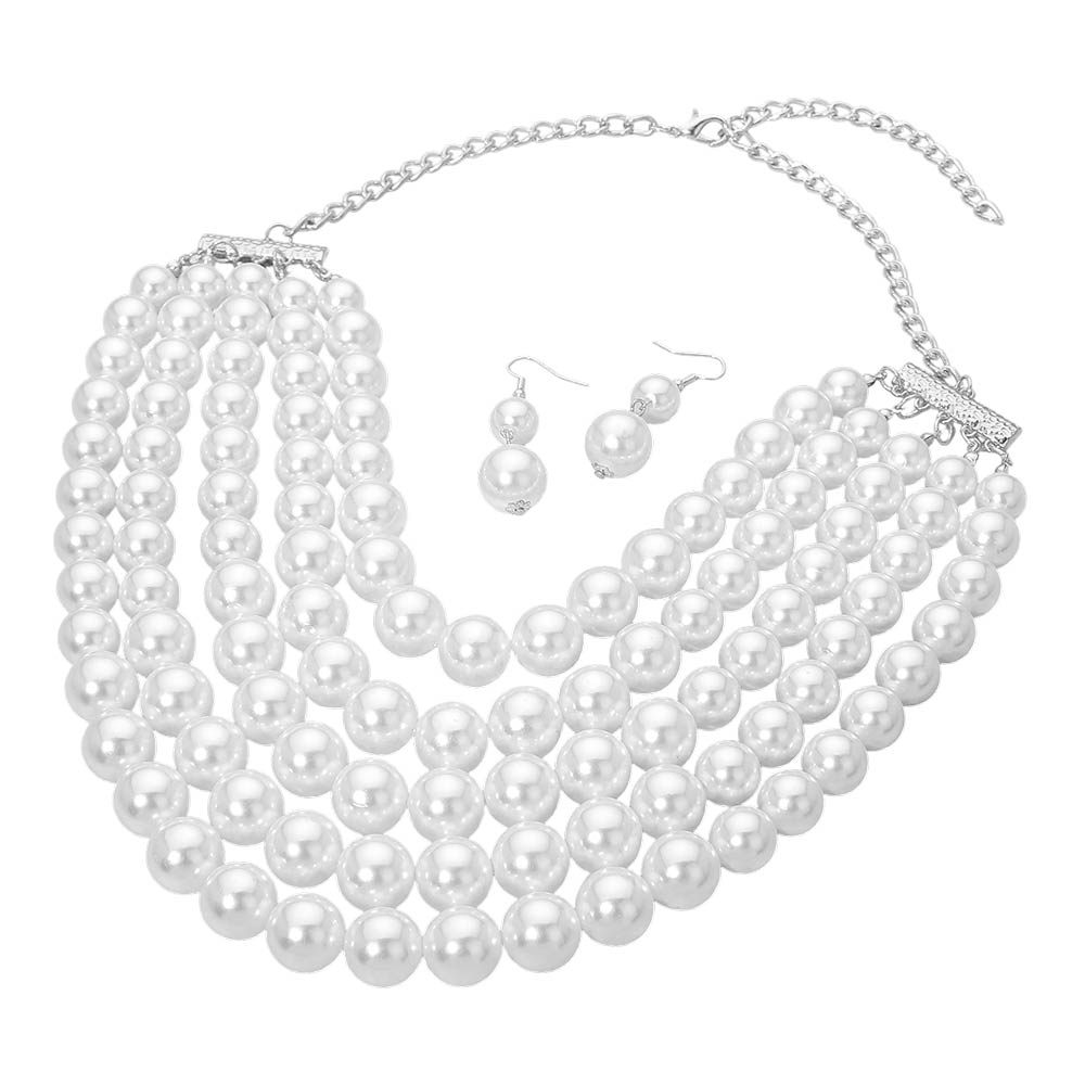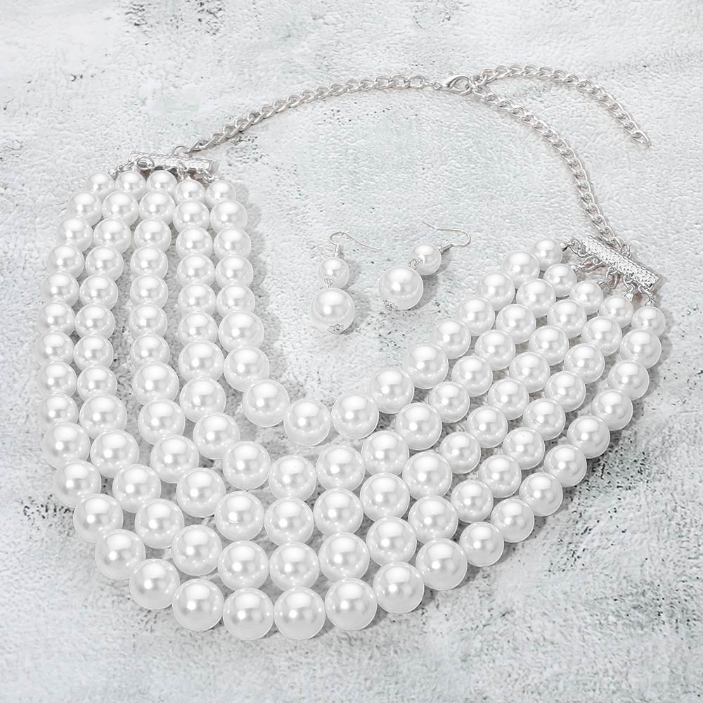 Pearl Beaded Multi Strand Statement Necklace Pearl Beaded Multi Strand Statement Necklace