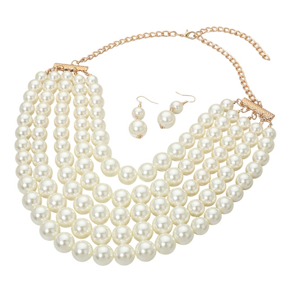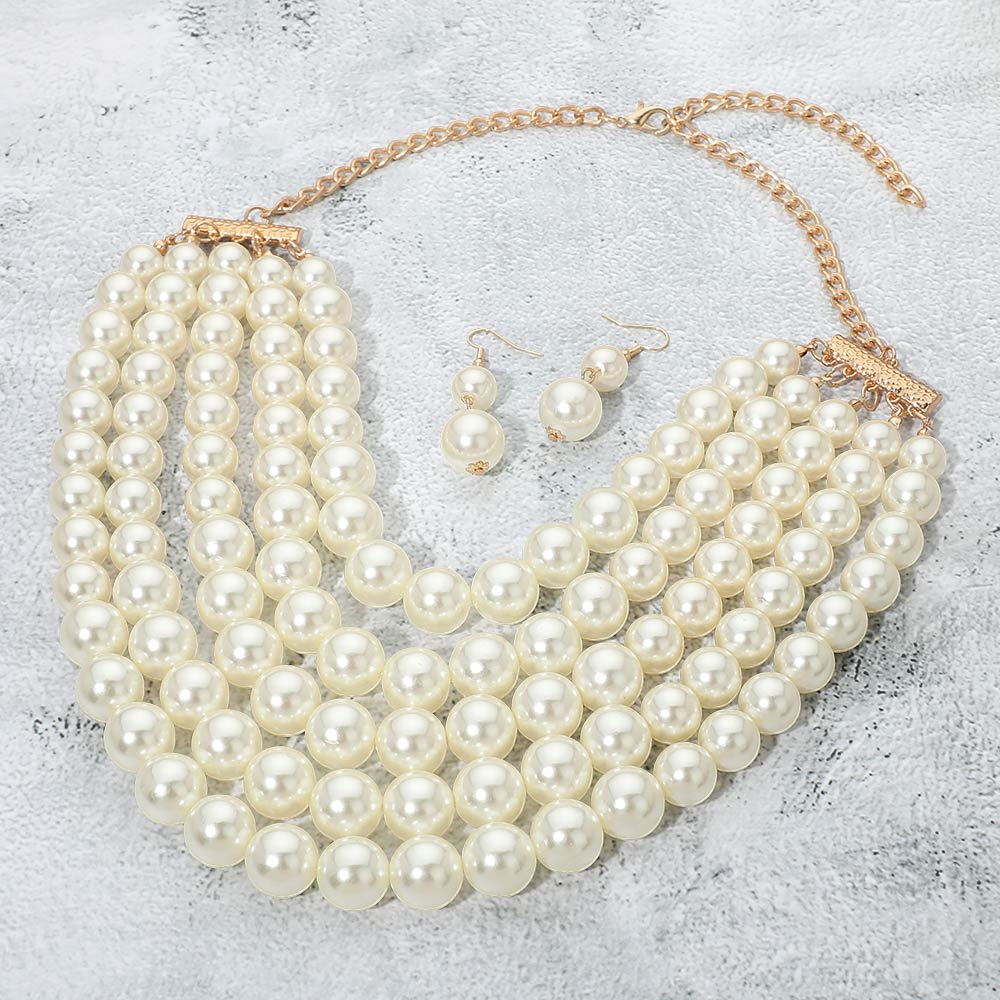 Pearl Beaded Multi Strand Statement Necklace Pearl Beaded Multi Strand Statement Necklace