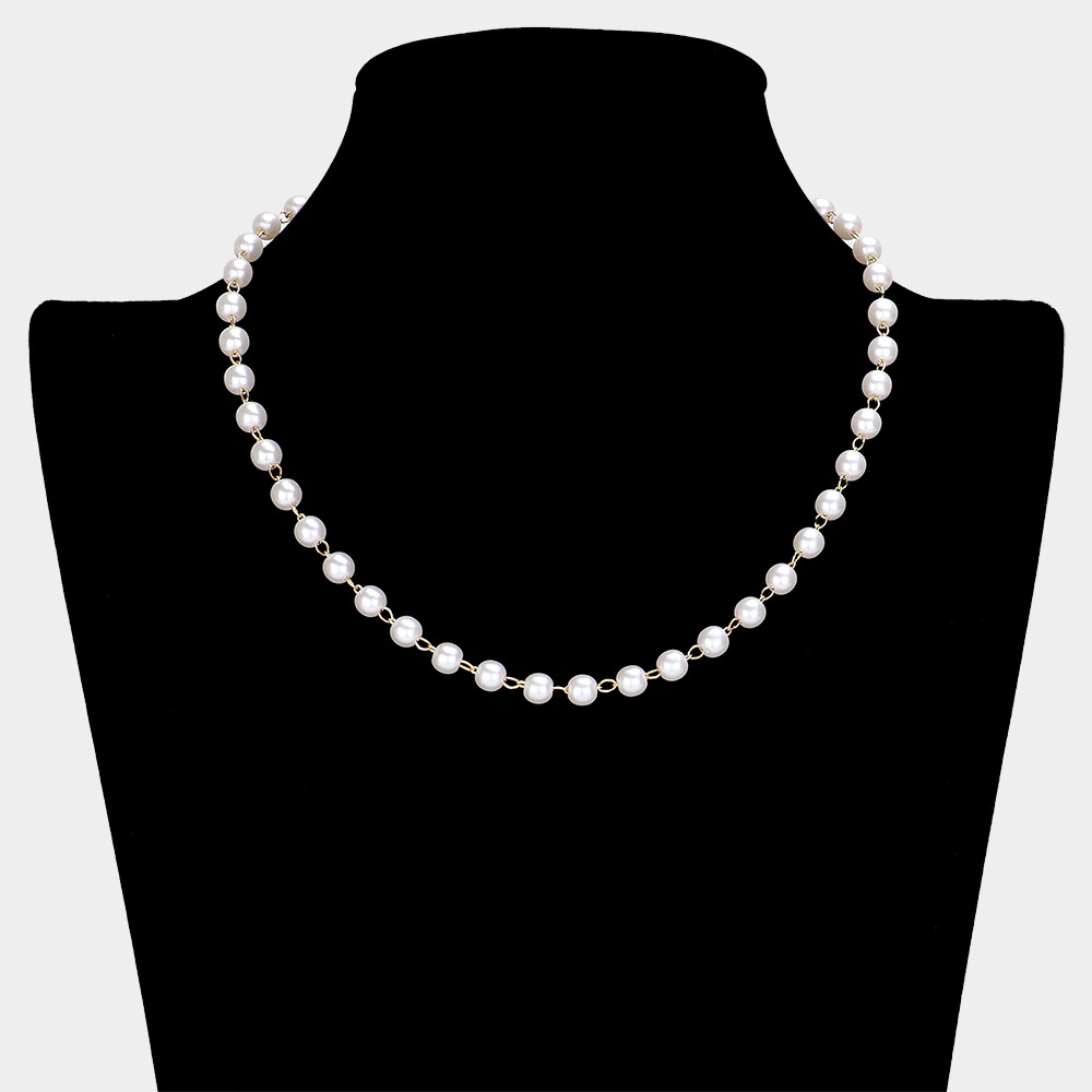 Details • Necklace Size : 16.5" + 2" L • Decor Size : 0.25" L • Elegant necklace featuring smooth round beads linked along a delicate chain for a timeless, polished look. Perfect for daily wear, gifting, or layering with other favorites, adding a refined and graceful touch to any style. • Gold Dipped