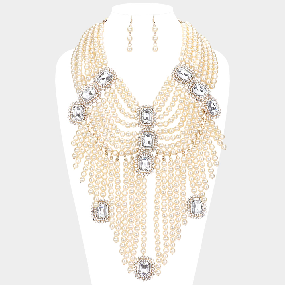 Flower Swan Embossed Medallion Key Cross Pearl Charm Station Layered Chain Necklace
