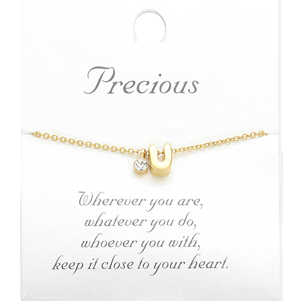 -T- Stainless Steel CZ Stone Paved Initial Monogram Pendant Necklace