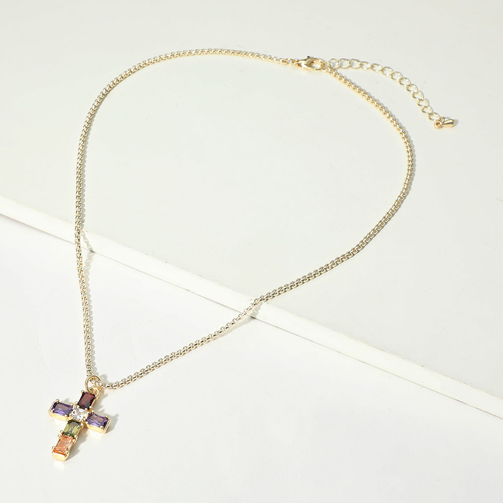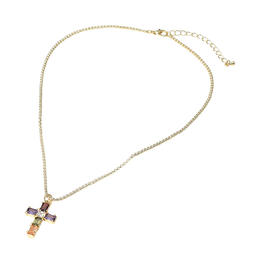 14K Gold Plated Colorful CZ Cross Pendant Necklace 14K Gold Plated Colorful CZ Cross Pendant Necklace 14K Gold Plated Colorful CZ Cross Pendant Necklace
