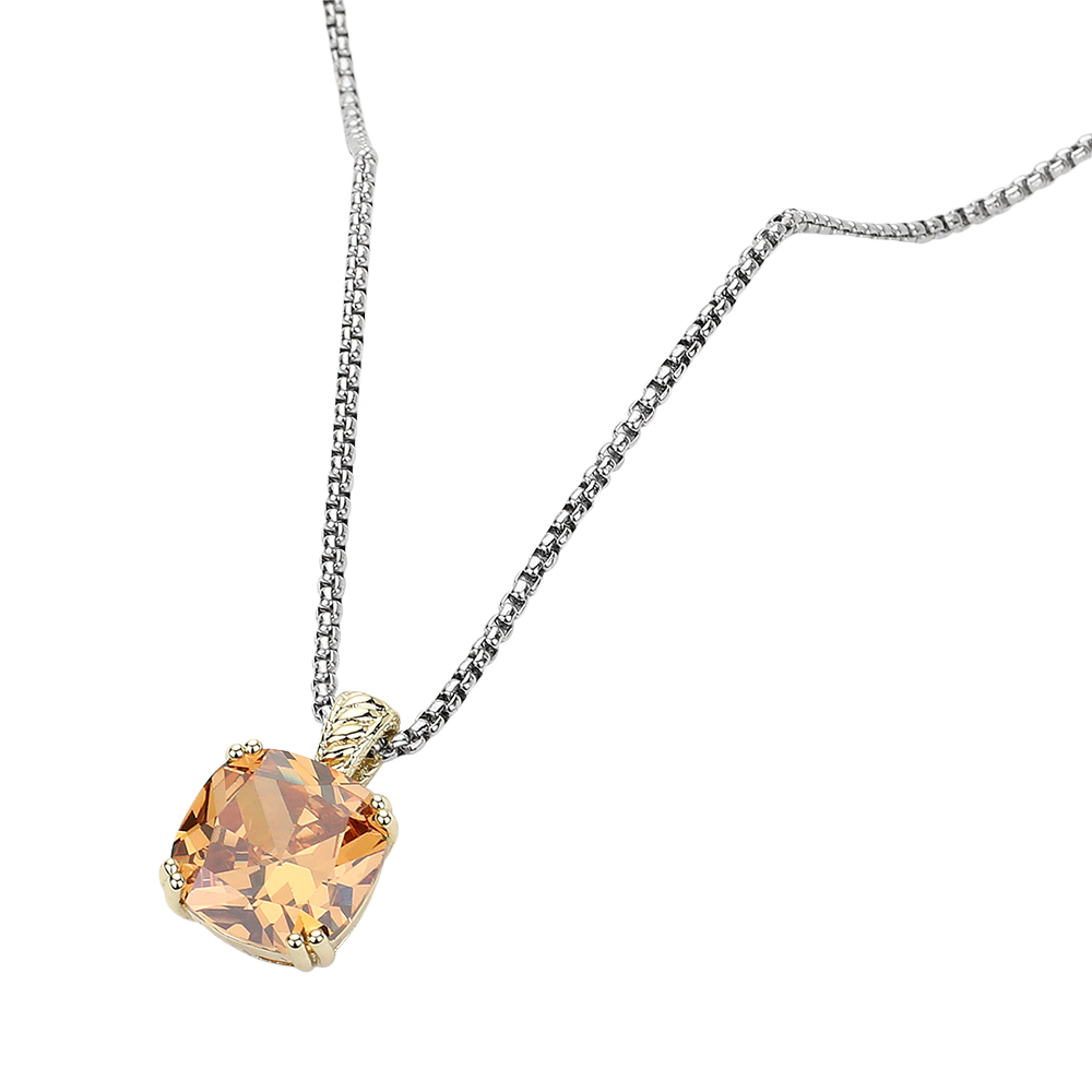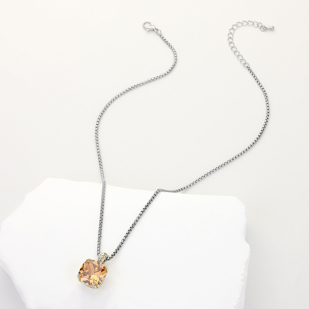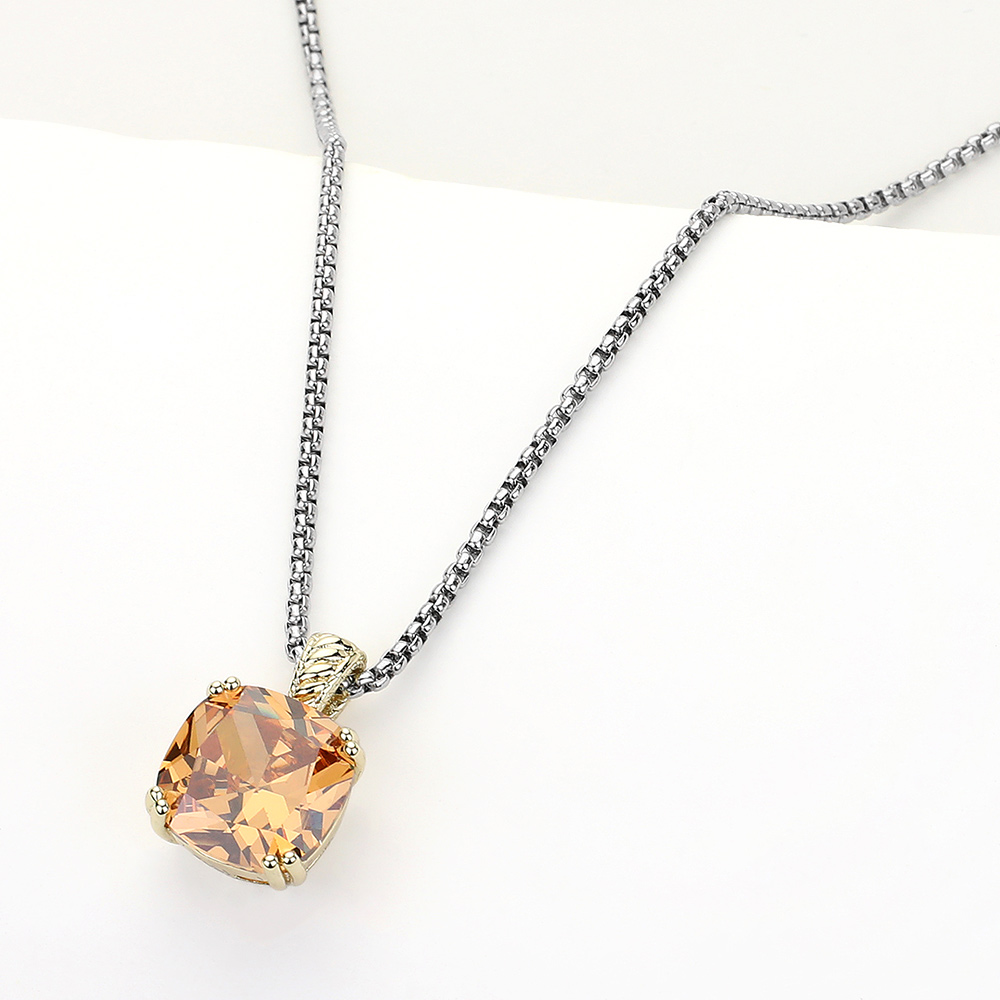 14K Gold Plated CZ Square Stone Pendant Necklace