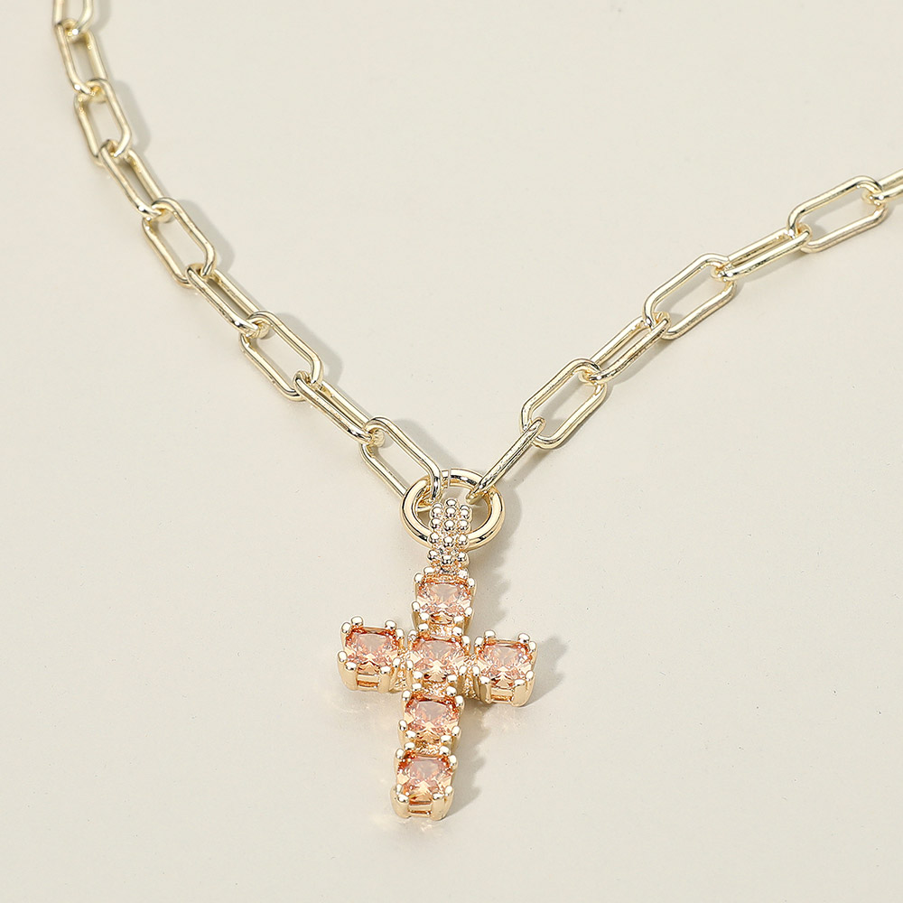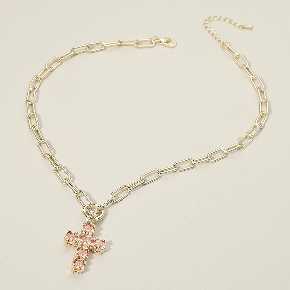 • A refined necklace featuring a sparkling cross pendant suspended from a modern paperclip-style chain. Its polished finish and timeless silhouette make it a standout accessory for everyday wear or special occasions, adding a touch of elegance to any look.