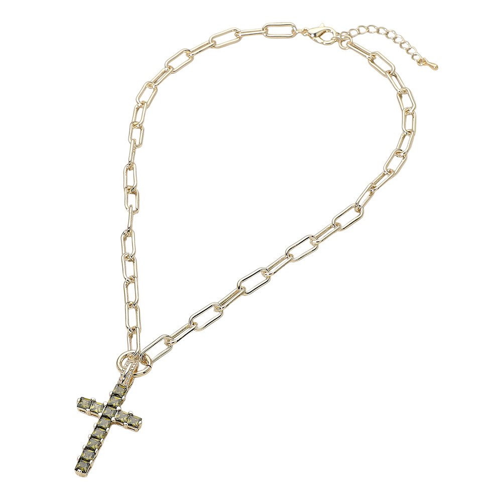 Details • Necklace Size : 17.5" + 2.25" L • Pendant Size : 0.8" X 1.75" • This elegant chain necklace features a radiant cross pendant adorned with shimmering cz stones, making it a versatile piece for both daily wear and special occasions. A timeless design that adds a graceful touch to any jewelry collection. • CZ Cubic Zirconia • Gold Dipped