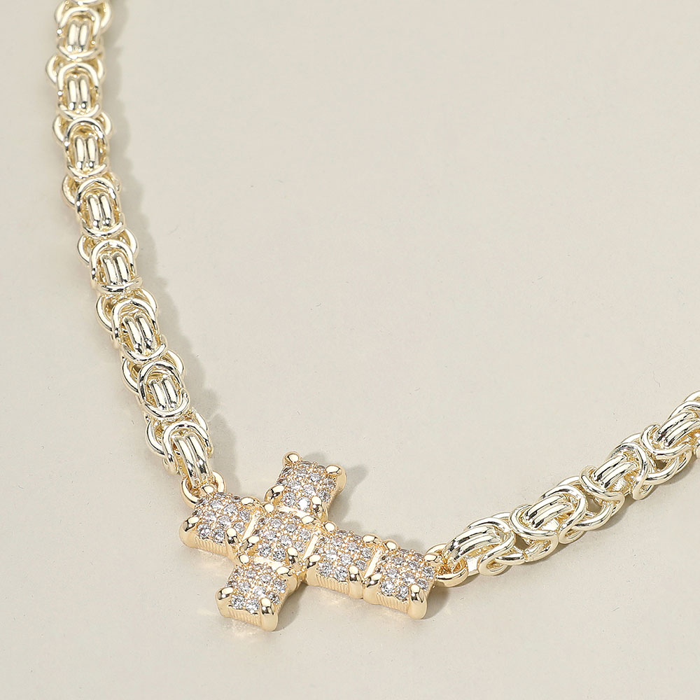 • Stylish cross pendant chain necklace featuring a detailed chain design and sparkling cz stone accents. A refined accessory that adds a touch of shine to any outfit, perfect for both everyday wear and special occasions.