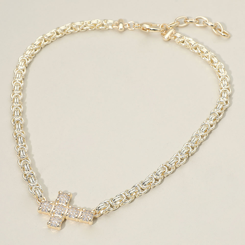 14K Gold Plated CZ Stone Paved Cross Accent Abstract Chain Necklace 14K Gold Plated CZ Stone Paved Cross Accent Abstract Chain Necklace 14K Gold Plated CZ Stone Paved Cross Accent Abstract Chain Necklace