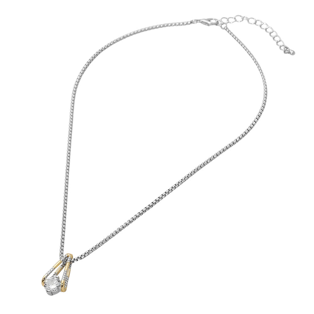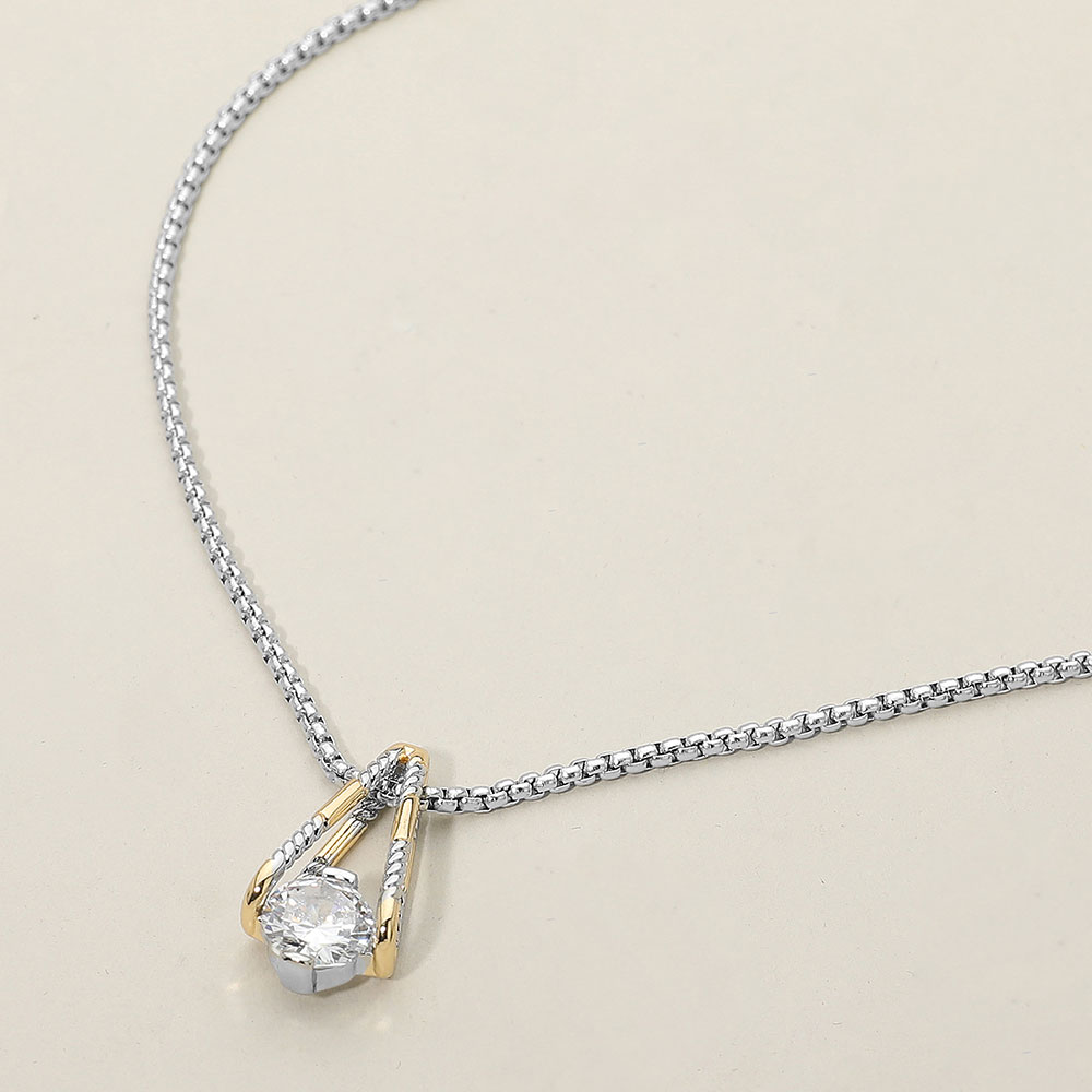 14K Gold Plated Elegant Solitaire CZ Stone Pendant Necklace
