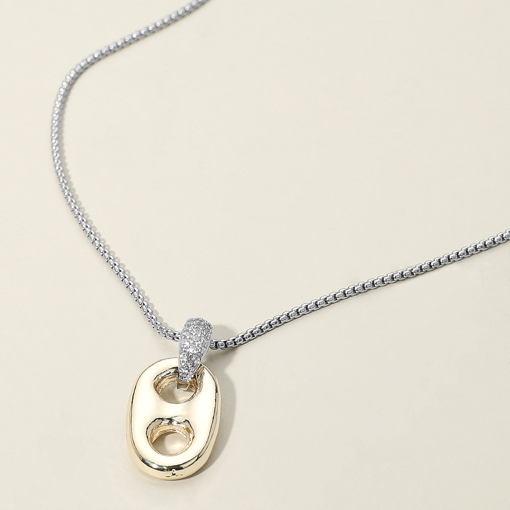 Details • Necklace Size : 16.5" + 2.25" L • Pendant Size : 0.6" X 1.3" • Elevate your accessories with this sleek two-tone necklace featuring a sculpted modern mariner link pendant accented with subtle sparkle. Its contemporary design adds refined character to any outfit, making it a versatile piece that blends artistic flair with everyday sophistication. • CZ Cubic Zirconia • Gold Dipped