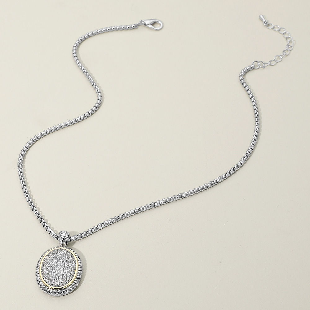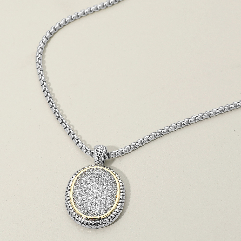 • This elegant oval pendant necklace features a dazzling pavĂ© crystal center framed by intricate metalwork for a refined finish. Designed for timeless appeal, it adds sophisticated sparkle to both everyday and formal looks, making it a versatile statement accessory.