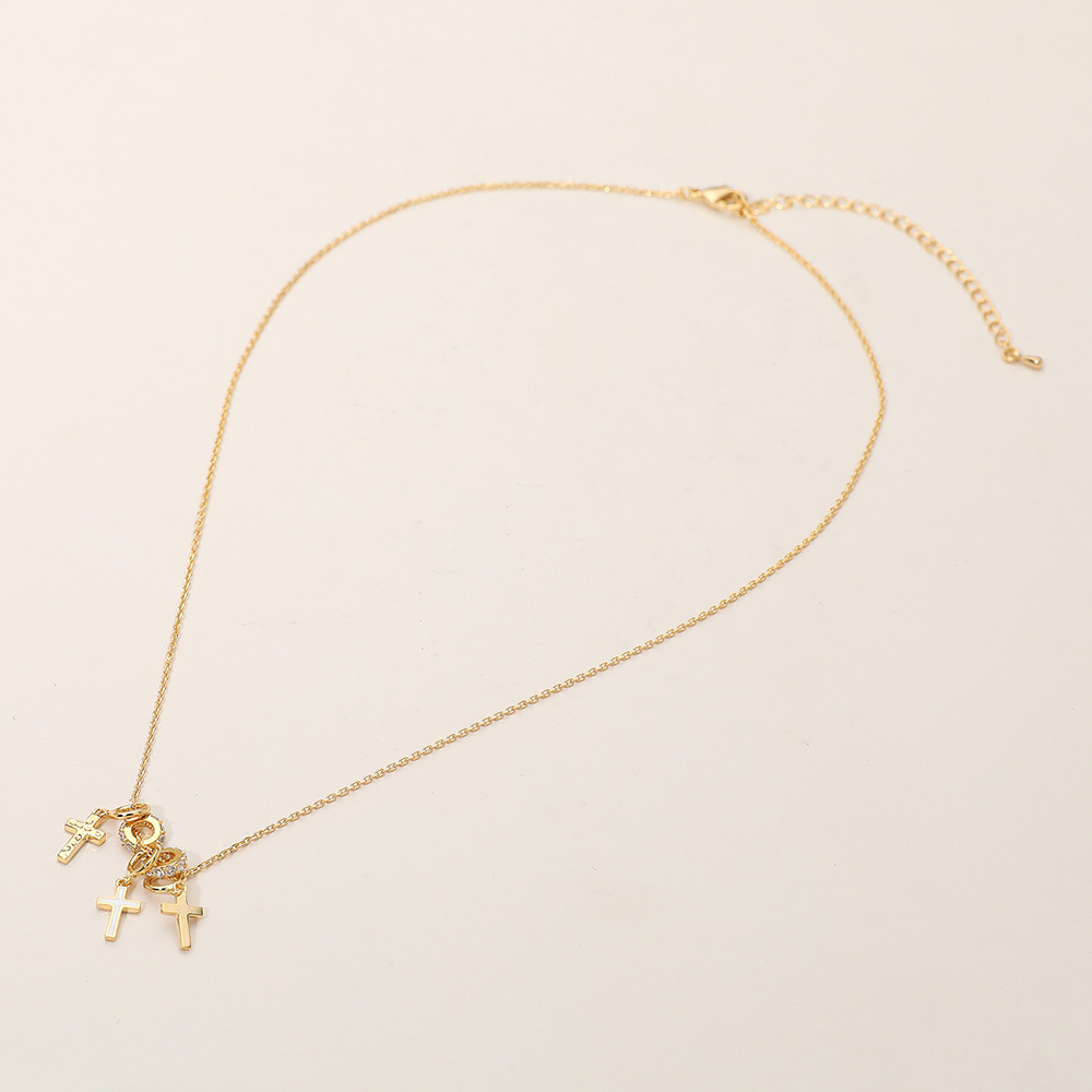 Details • Necklace Size : 16" + 3" L • Decor Size : 0.75" L • Stylish layered necklace featuring delicate chains adorned with small cross pendants for a modern, meaningful touch. Perfect for daily wear or layering with other pieces, adding elegance and symbolism to any outfit with a minimalist and refined design that never goes out of style. • Gold Dipped • Lead and Nickel Compliant