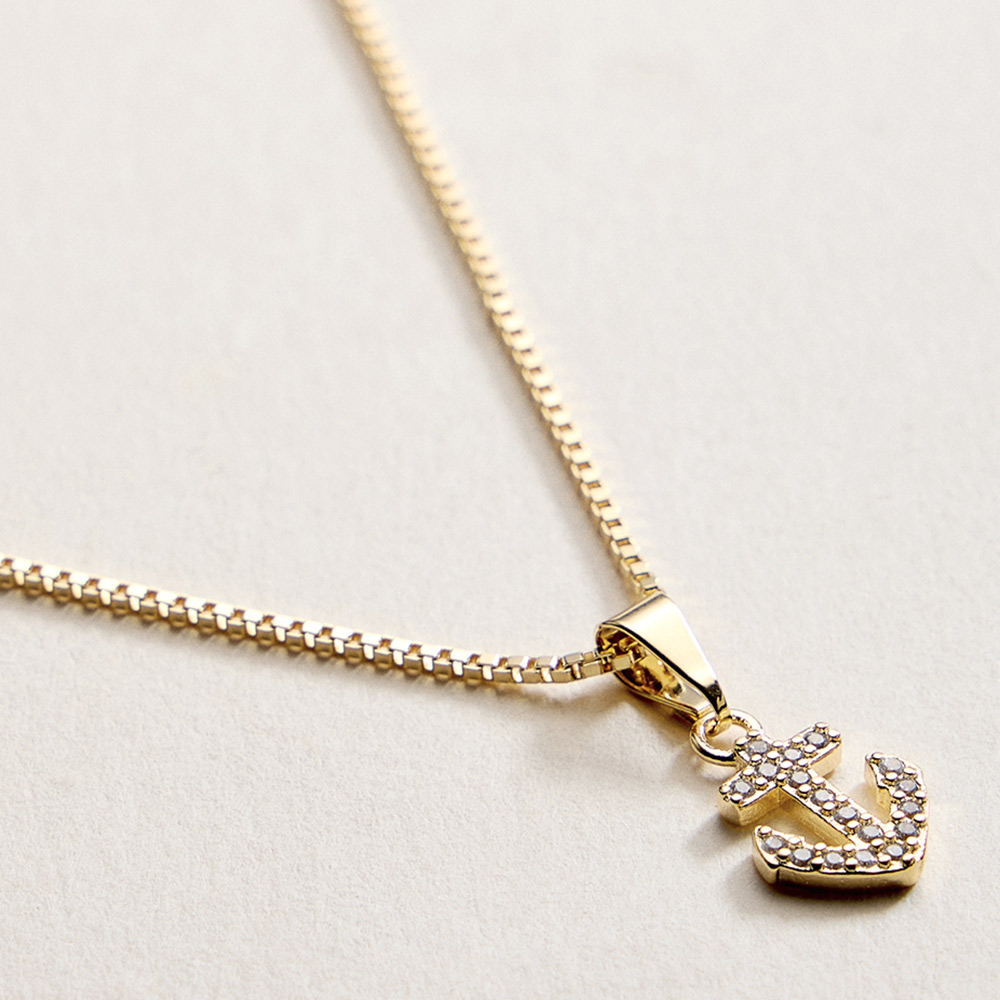 Details • Necklace Size : 18" + 1.75" L • Pendant Size : 0.3" X 0.75" • This anchor charm pendant necklace delivers a timeless nautical touch with a refined silhouette. Designed for everyday wear or vacation styling, it layers effortlessly with other chains or shines on its own. A versatile jewelry piece ideal for coastal themes, gift shops, and trend-driven collections. • CZ Cubic Zirconia • Gold Filled • Hypoallergenic • Lead and Nickel Compliant • Made In Brazil