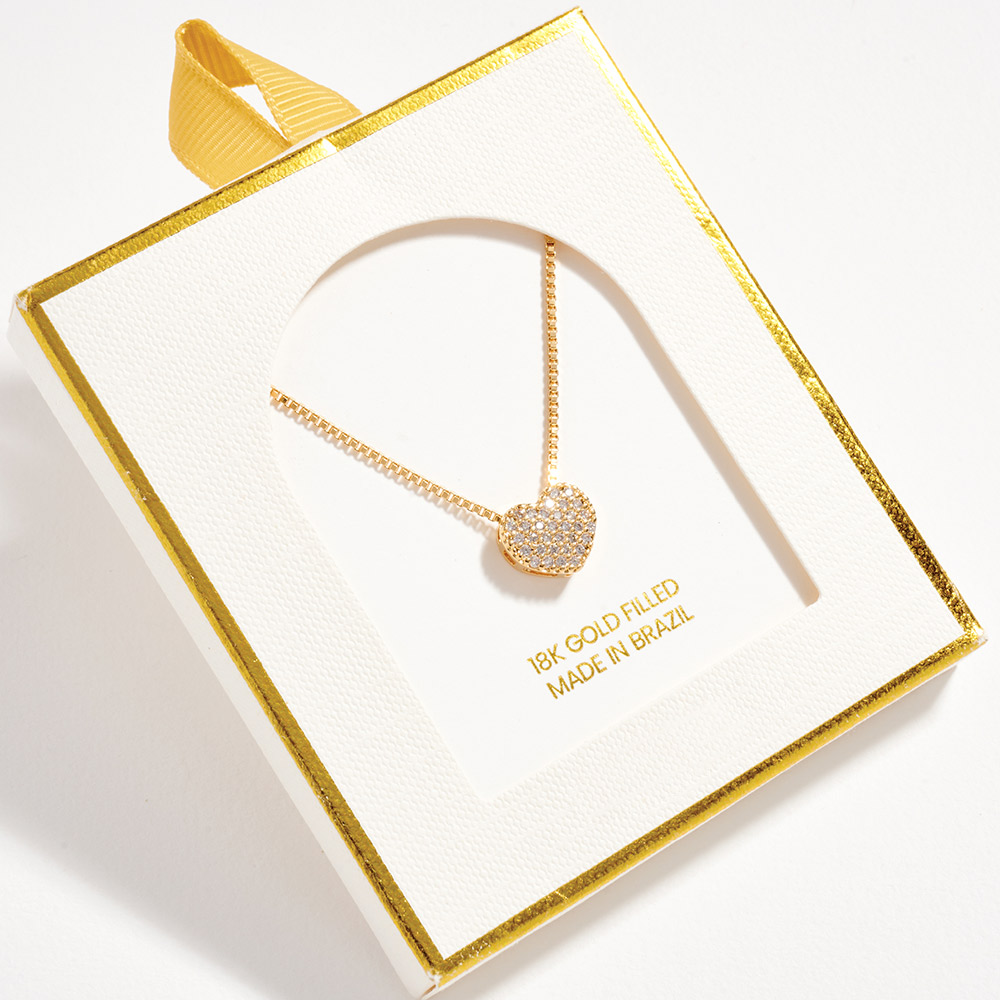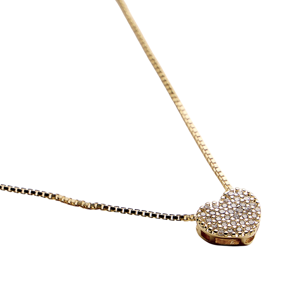 18K Gold Filled CZ Stone Paved Heart Pendant Necklace