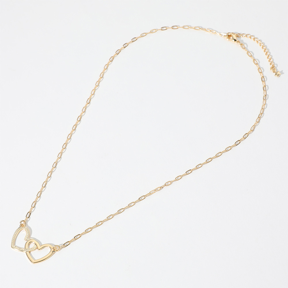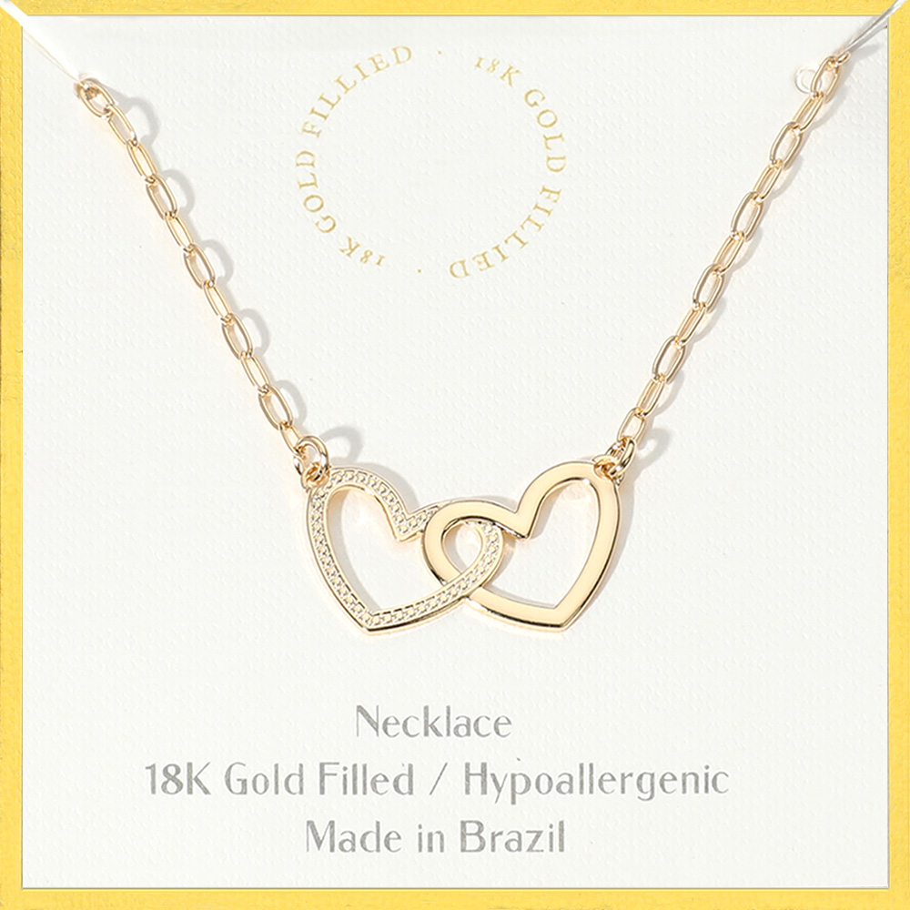 18K Gold Filled Hypoallergenic Double Open Heart Pendant Paperclip Chain Necklace