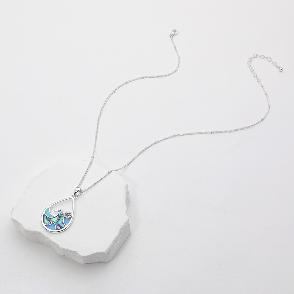 Abalone Sea Glass Wave Teardrop Pendant Necklace