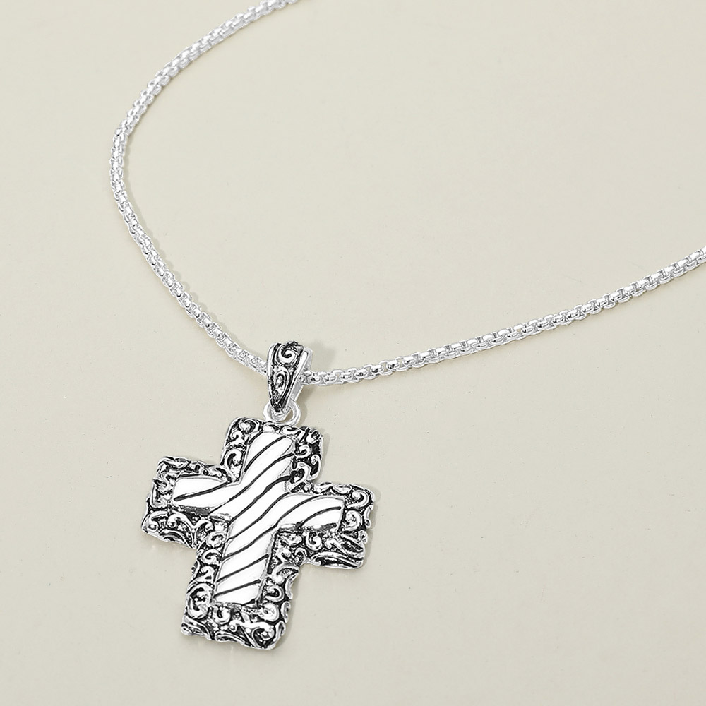 Details • Necklace Size : 18" + 3" L • Pendant Size : 1.3" X 2.2" • This cross pendant necklace features a timeless faith-inspired design with subtle detailing for everyday wear. Ideal for layering or wearing solo, it suits gifting, spiritual collections, and year-round styling. A meaningful jewelry piece for boutiques seeking symbolic accessories with lasting customer appeal. • Lead and Nickel Compliant