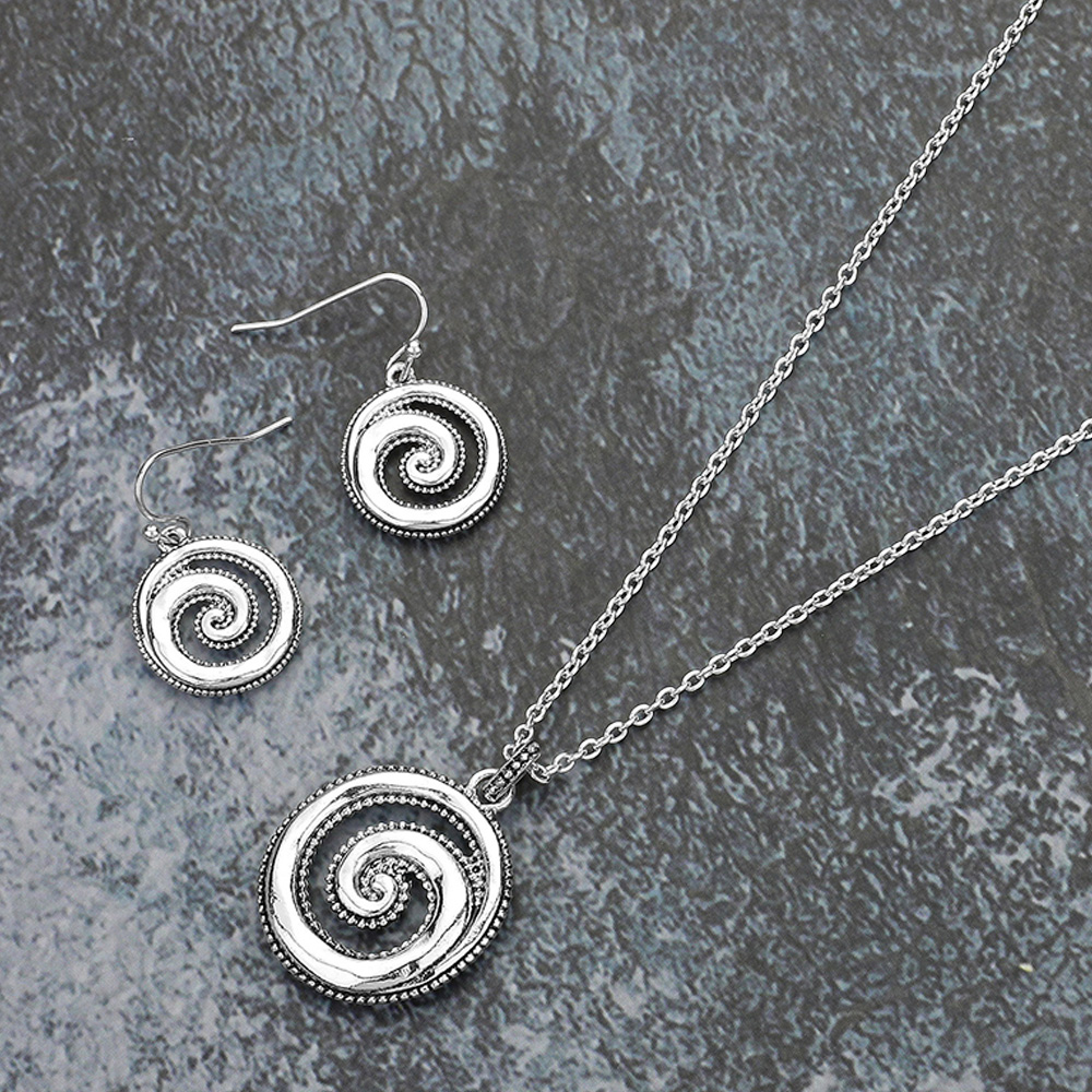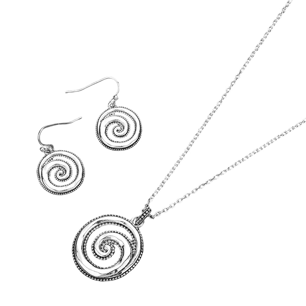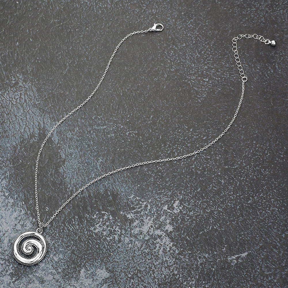 Antique Metal Hammered Open Swirl Pendant Necklace