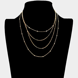 Gold Dipped Double Quatrefoil Pendant Bubble Chain Necklace