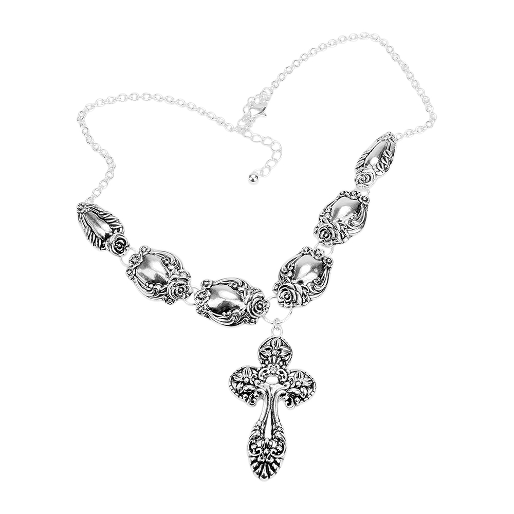 Antique Silver Cross Metal Necklace
