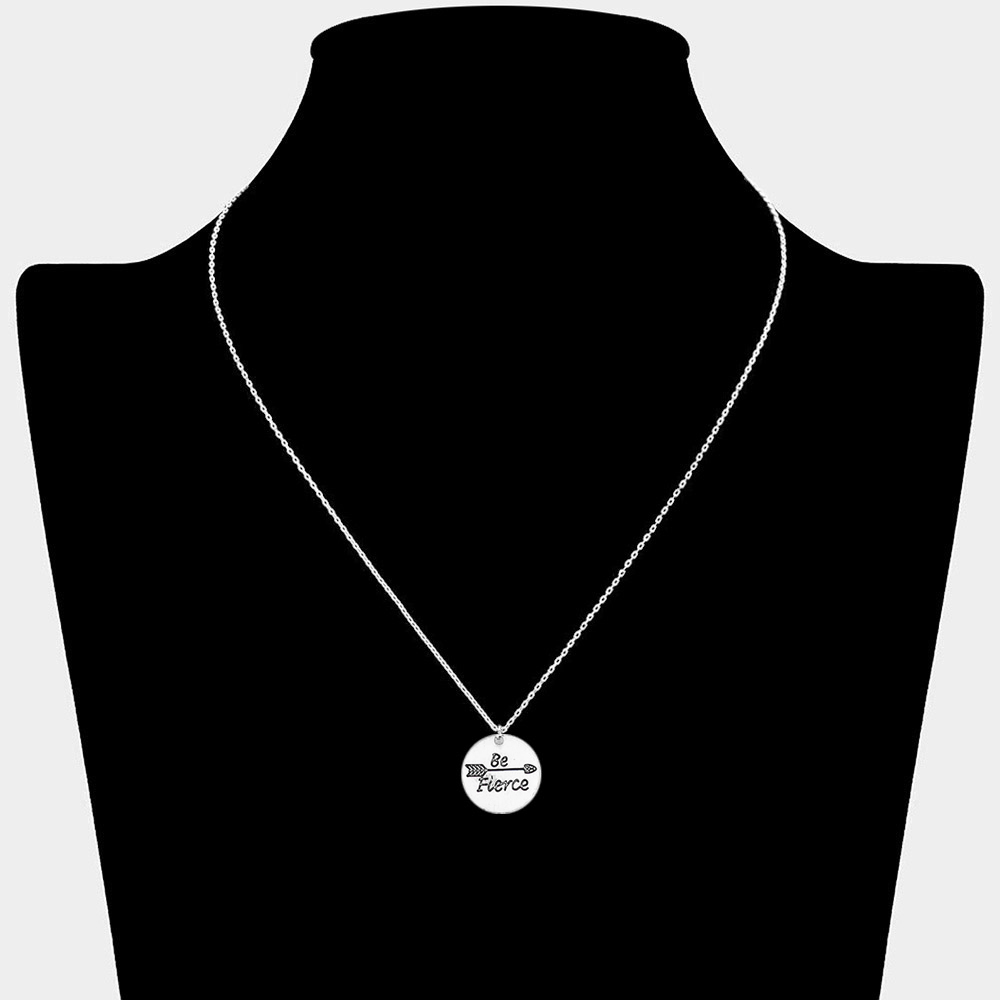 'Be Fierce' Arrow Round Metal Pendant Necklace