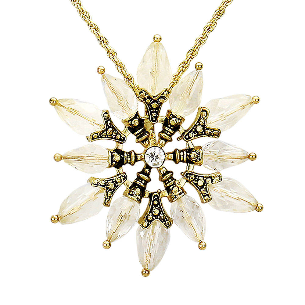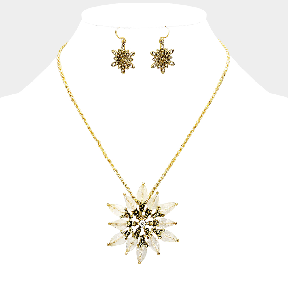 Bead Antique Metal Flower Flake Pendant Necklace