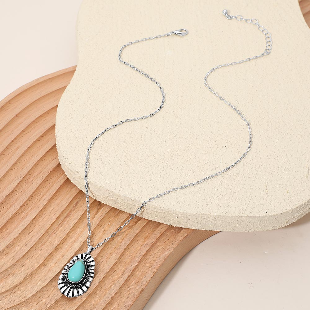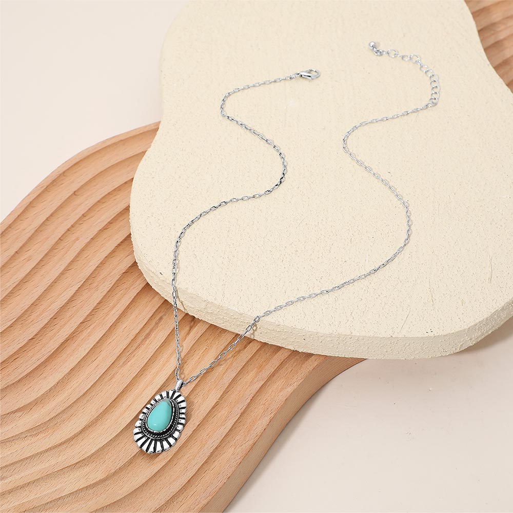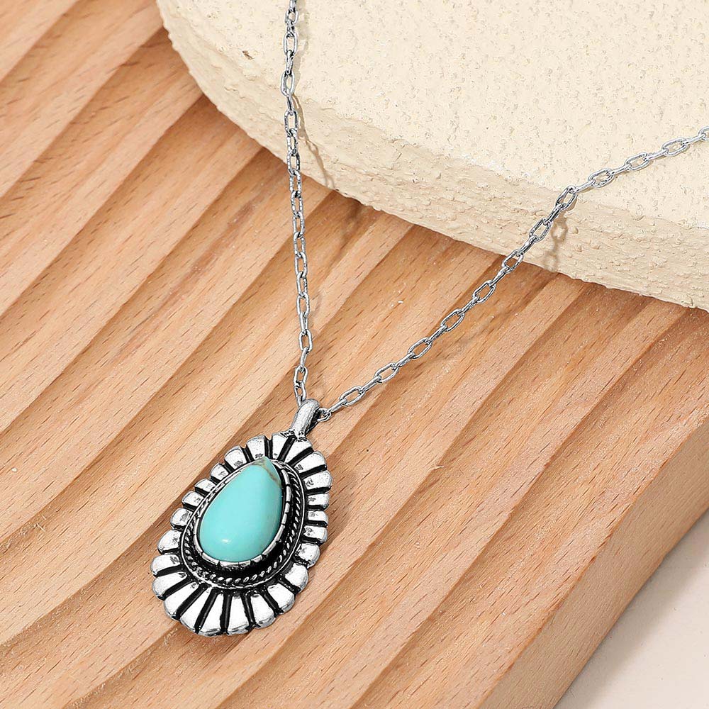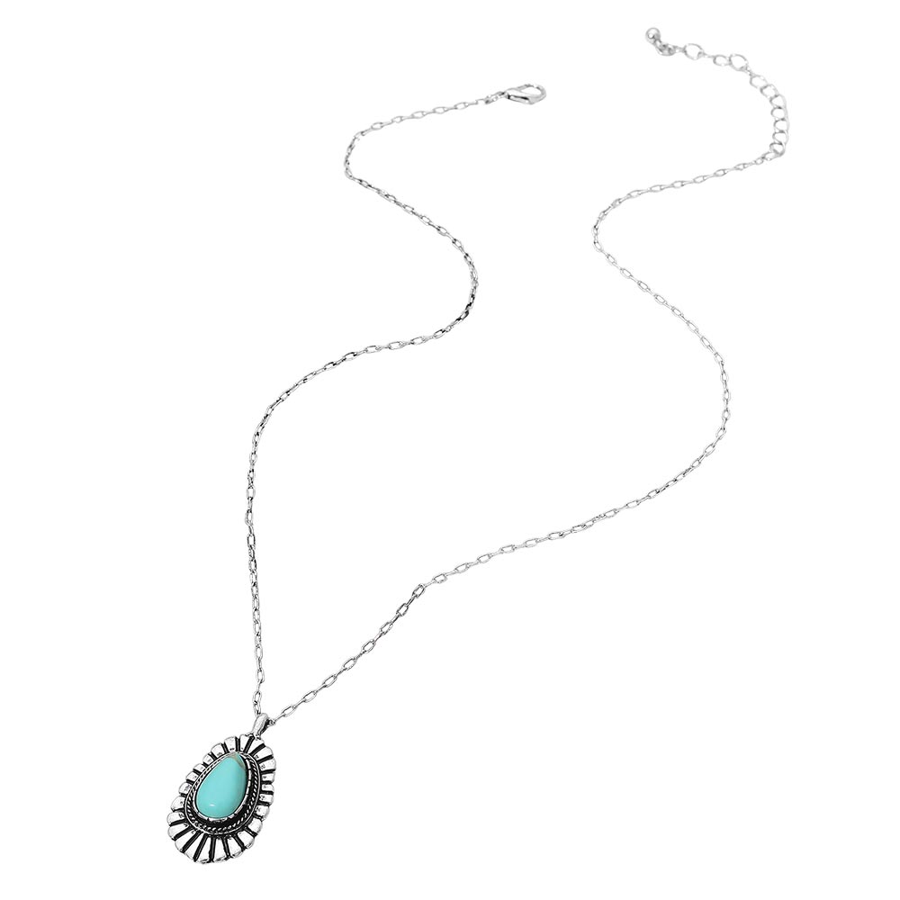 Details • Necklace Size : 19" + 2" L • Pendant Size : 0.75" X 1.5" • Elevate your look with this Boho Teardrop Stone Pendant Necklace. The elegant teardrop design framed in intricate detailing captures a perfect blend of vintage allure and modern simplicity. Ideal for casual outings or layering with other pieces for a chic, effortless statement. • Lead and Nickel Compliant