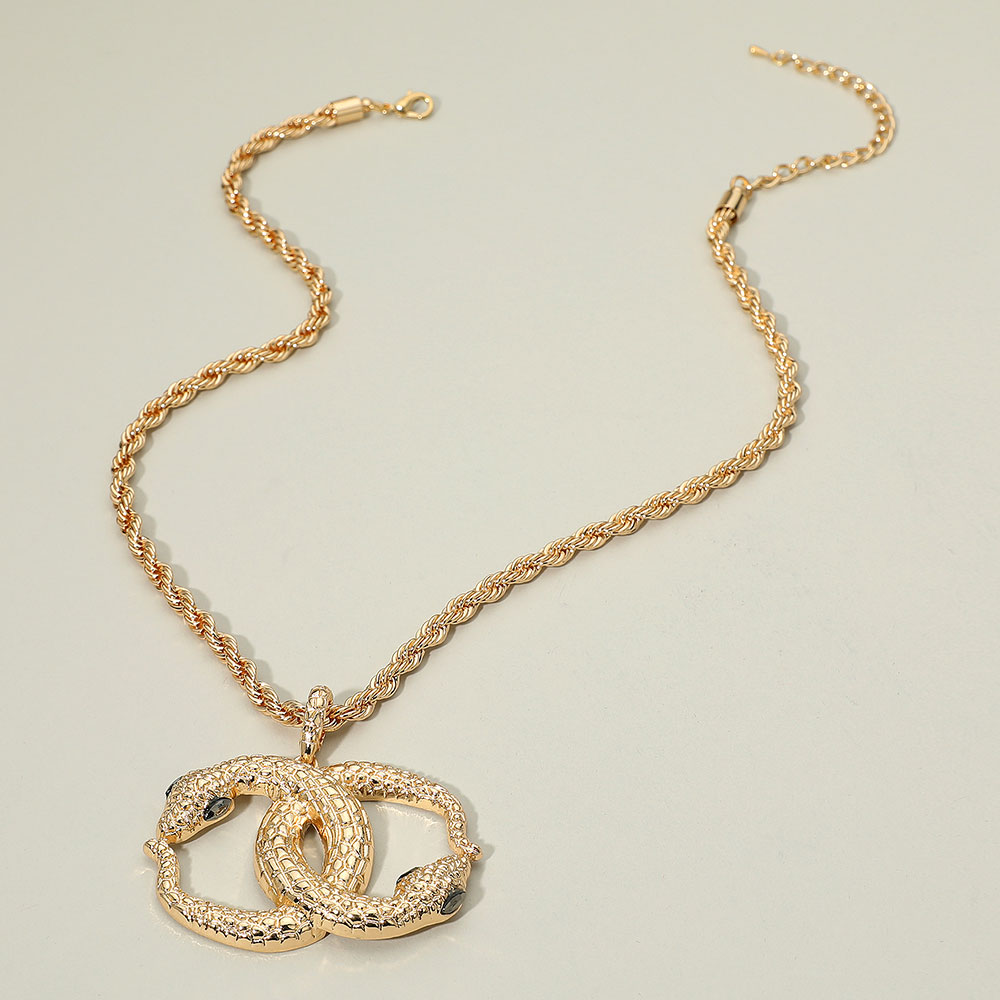 Bold Textured Metal Interlocking Snake Pendant Chunky Twisted Chain Necklace