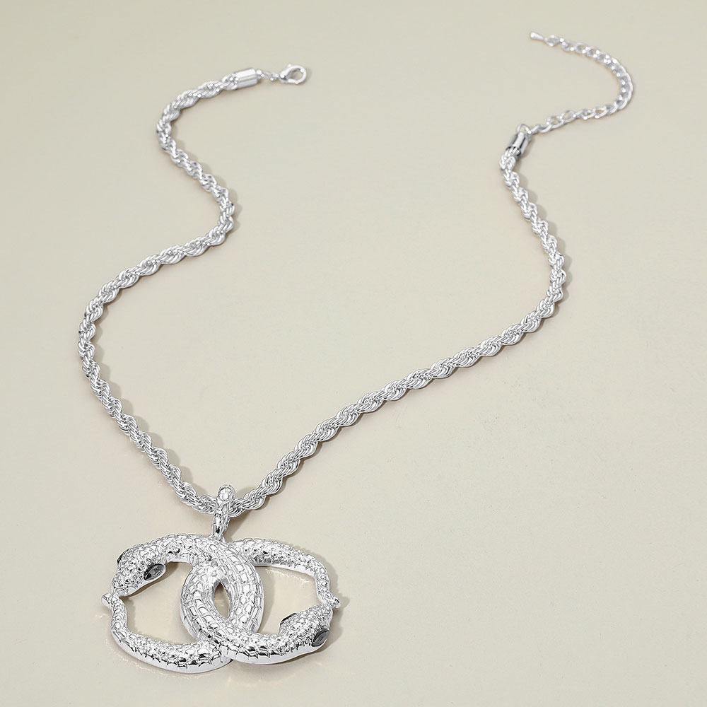 Bold Textured Metal Interlocking Snake Pendant Chunky Twisted Chain Necklace Bold Textured Metal Interlocking Snake Pendant Chunky Twisted Chain Necklace Bold Textured Metal Interlocking Snake Pendant Chunky Twisted Chain Necklace