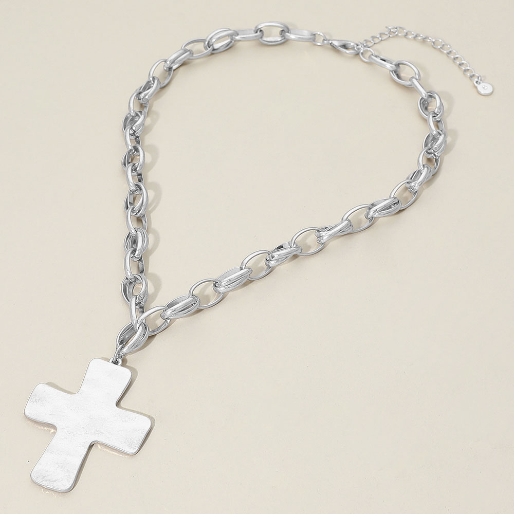 Brushed Metal Cross Pendant Chunky Chain Necklace Brushed Metal Cross Pendant Chunky Chain Necklace Brushed Metal Cross Pendant Chunky Chain Necklace