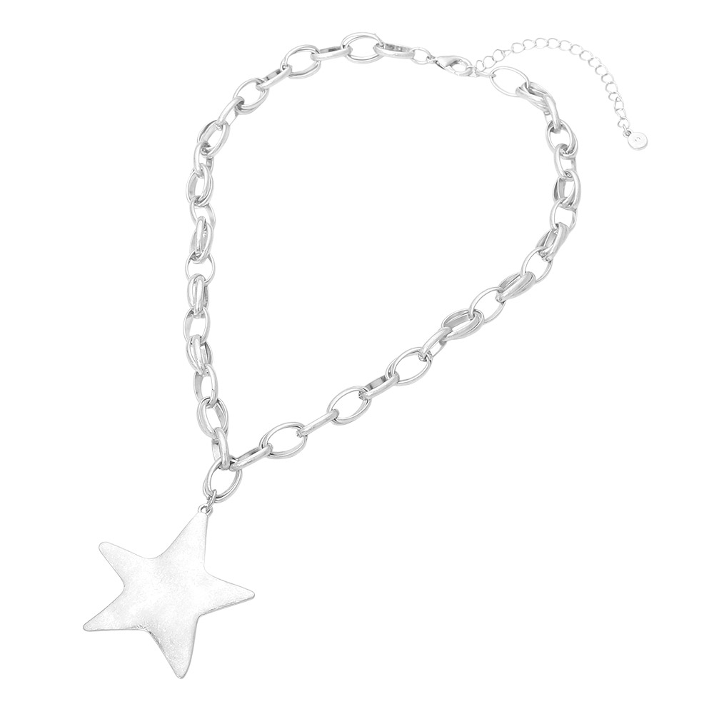 Brushed Metal Star Pendant Chunky Chain Necklace Brushed Metal Star Pendant Chunky Chain Necklace Brushed Metal Star Pendant Chunky Chain Necklace