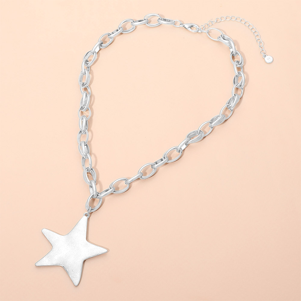Brushed Metal Star Pendant Chunky Chain Necklace