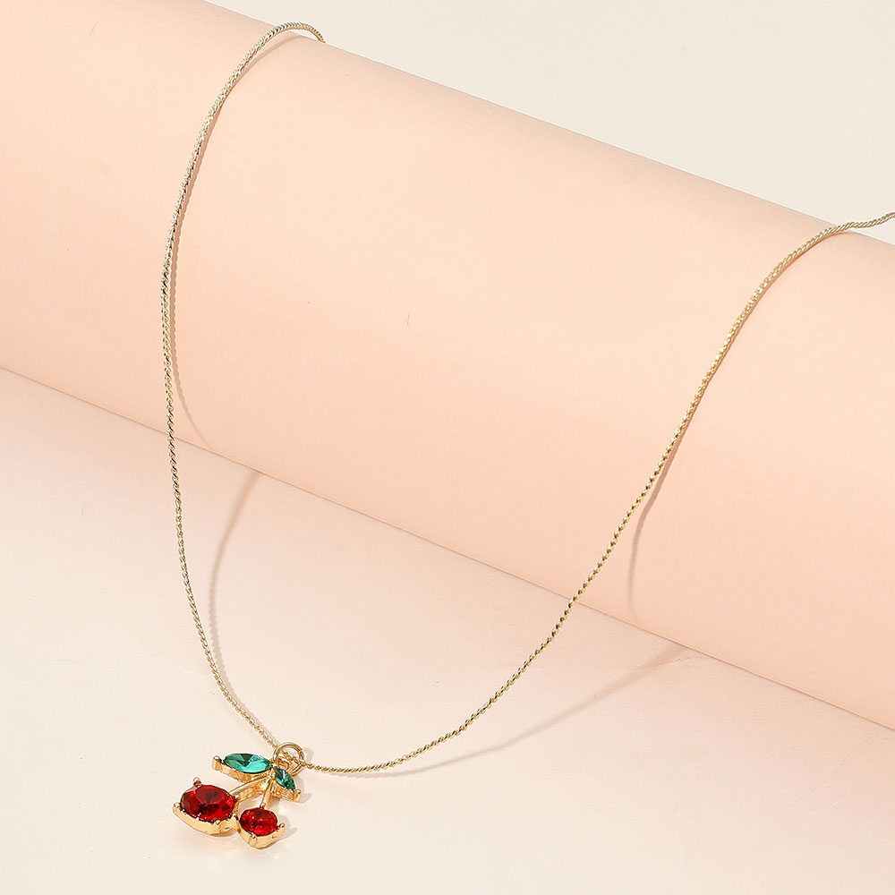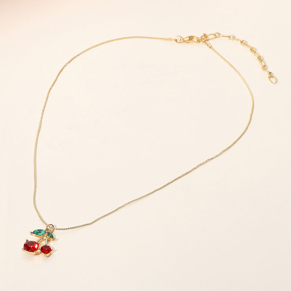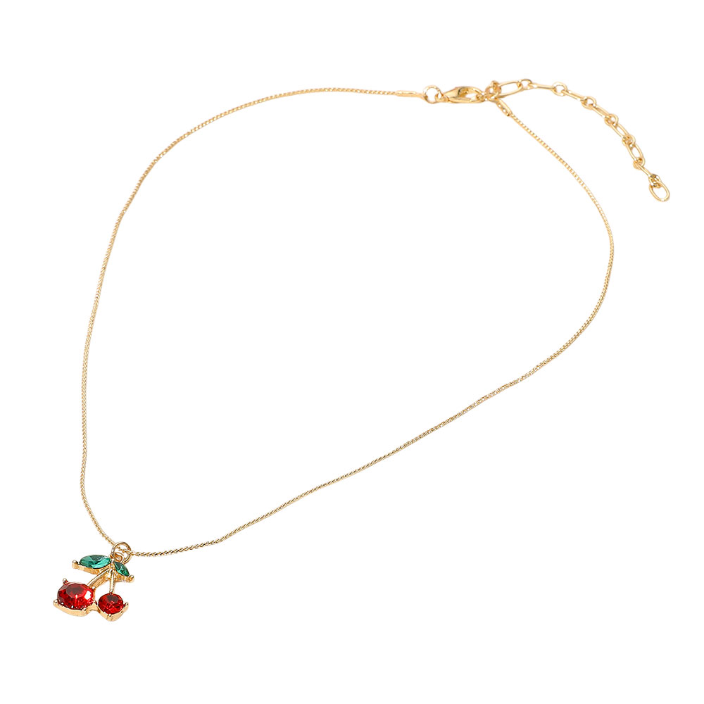 Details • Necklace Size : 16" + 3" • Pendant Size : 0.6" X 0.7" • This charming necklace features a playful cherry pendant, suspended on a fine adjustable chain for the perfect fit. Its fun yet elegant design makes it an eye-catching accessory for adding a fresh, vibrant touch to any look. Perfect for casual or dressy occasions. • Lead and Nickel Compliant