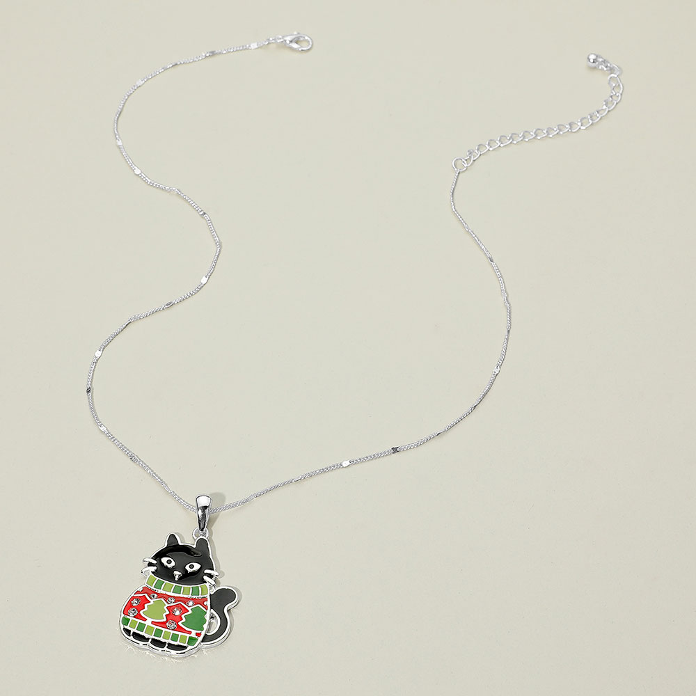 Details • Necklace Size : 18" + 3" L • Pendant Size : 1.25" X 1.75" • Adorable festive cat pendant necklace featuring a cozy holiday sweater design. A perfect seasonal accessory for cat lovers, adding a cheerful and whimsical touch to winter outfits and celebrations. • Lead and Nickel Compliant