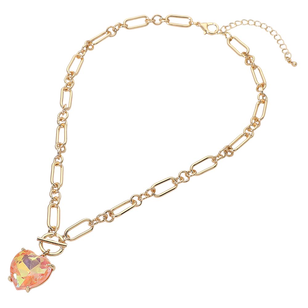 Chunky Heart Stone Cluster Toggle Pendant Necklace