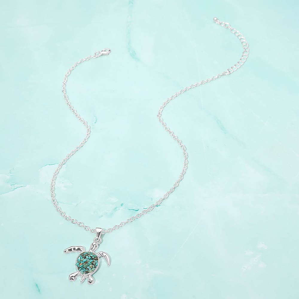 Crushed Pebble Sea Turtle Pendant Necklace Crushed Pebble Sea Turtle Pendant Necklace Crushed Pebble Sea Turtle Pendant Necklace