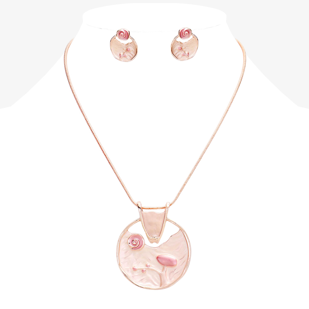 Round Stone Pointed Bling Studded Flower Pendant Long Necklace
