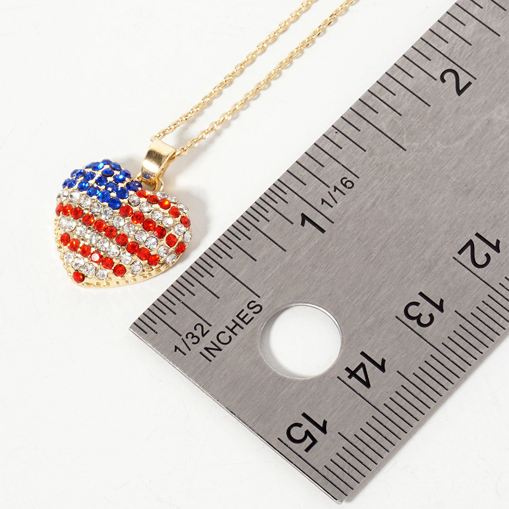 Crystal Paved American USA Flag Heart Pendant Necklace
