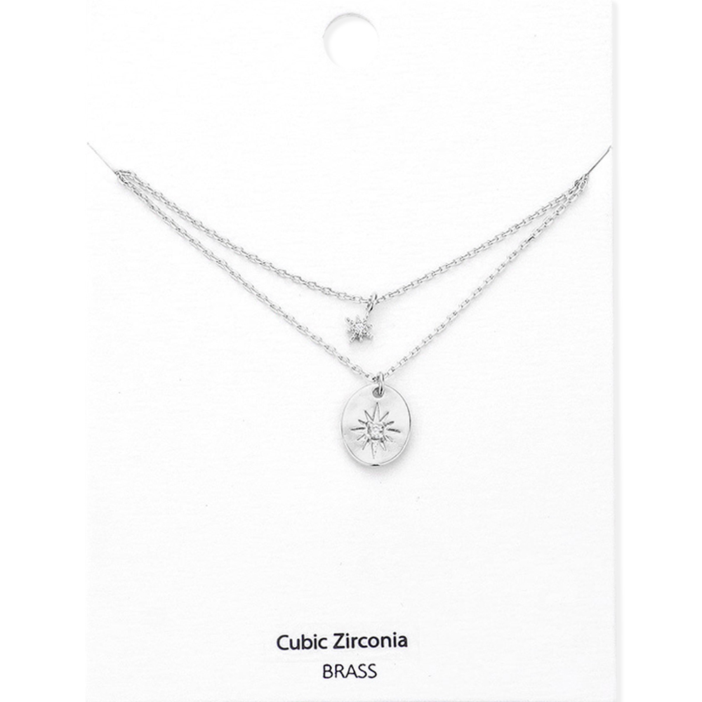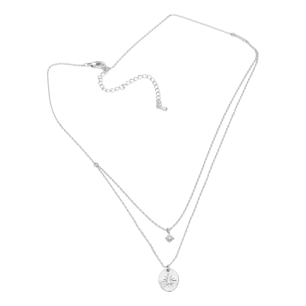 CZ Embellished Brass Metal North Star Pendant Double Layered Necklace