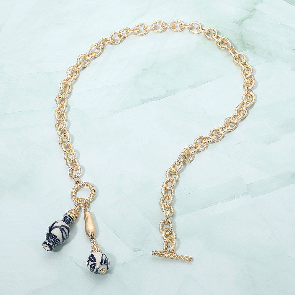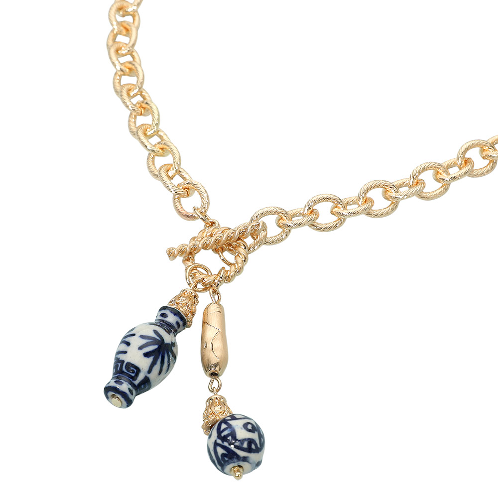 Double Ceramic Charm Pendant Toggle Necklace