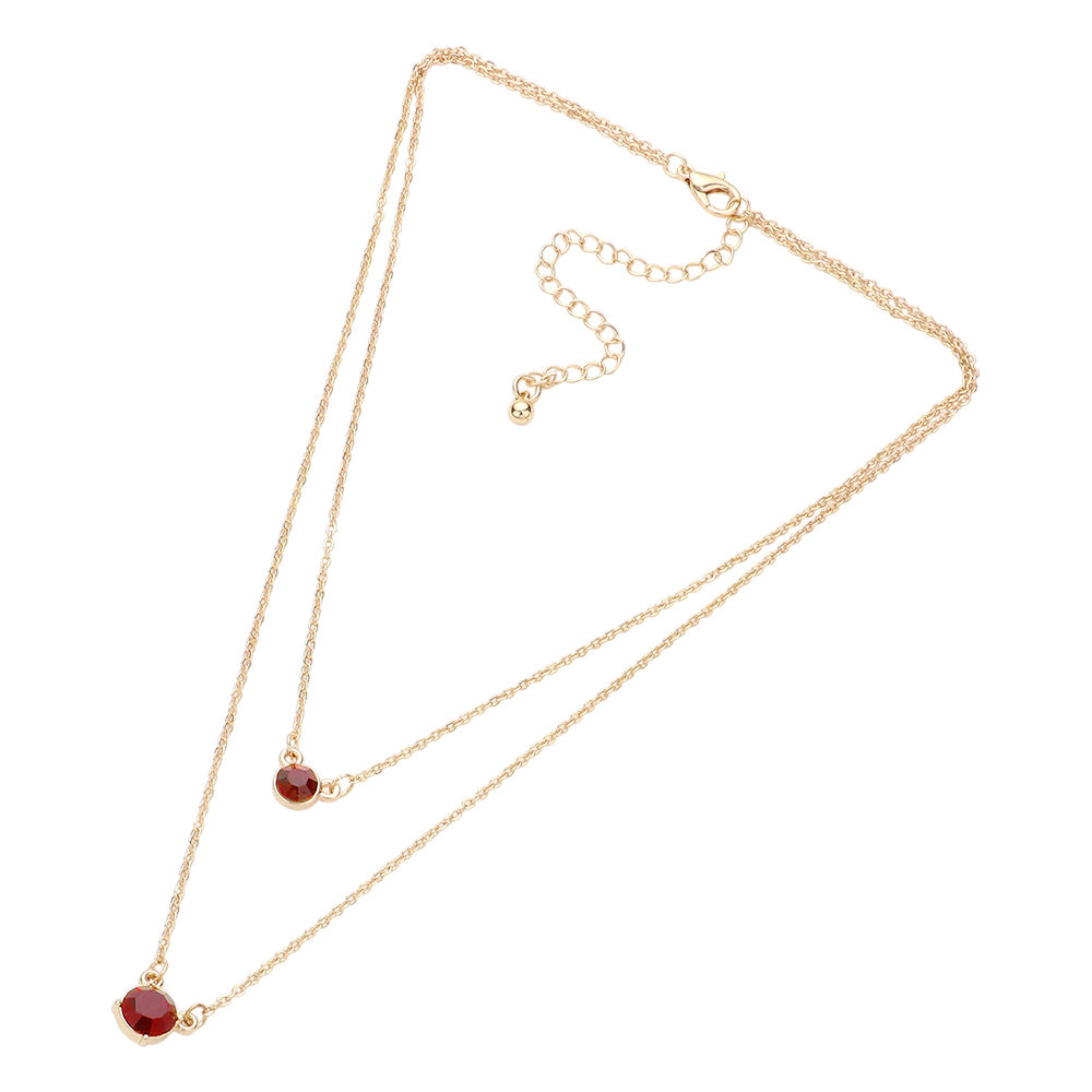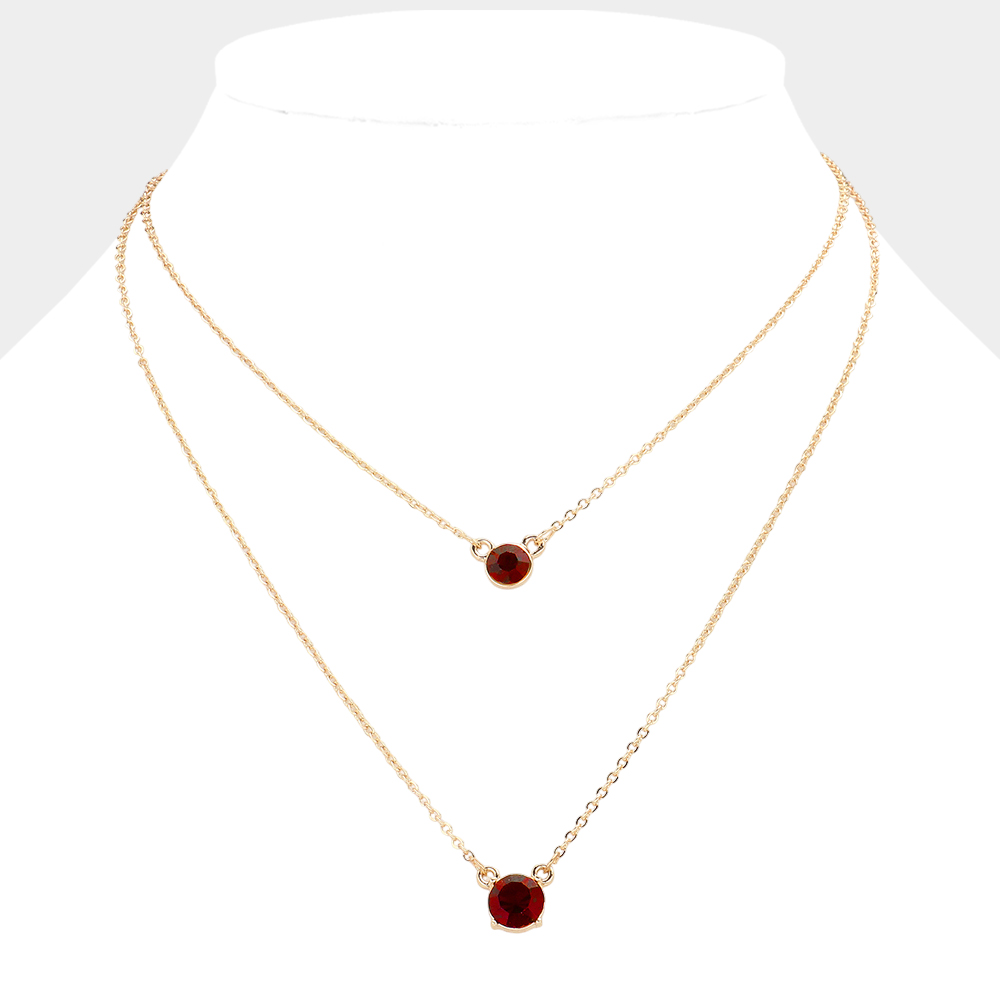 Double Round Stone Pendant Layered Necklace