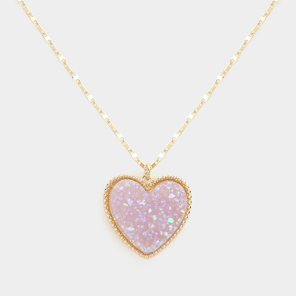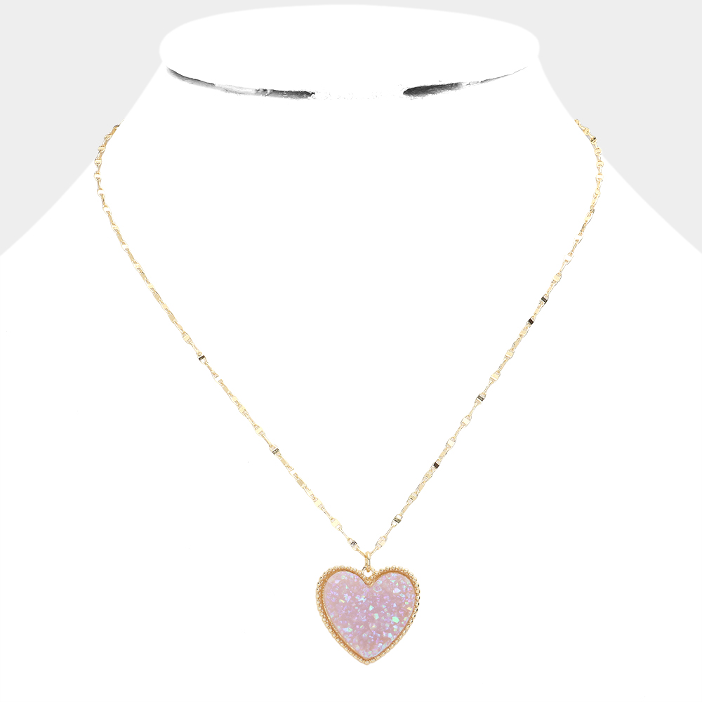 Druzy Heart Pendant Necklace