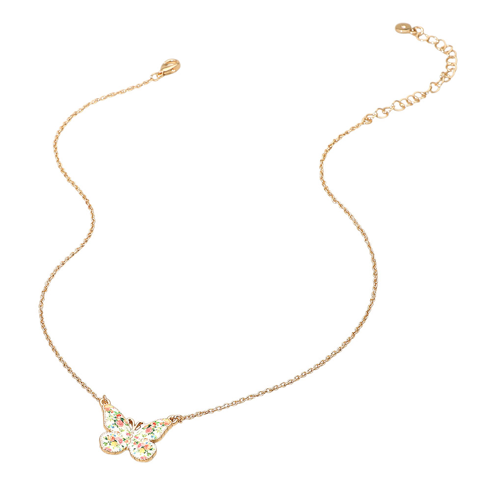 Details • Necklace Size : 16" + 3" L • Pendant Size : 0.8" X 0.7" • A dainty butterfly pendant necklace featuring a sparkling, multitone accent design that adds soft, eye-catching shine. Its lightweight, feminine style makes it perfect for daily wear, gifting, or layering, offering a charming accessory that brings a touch of whimsical elegance to any outfit. • Lead and Nickel Compliant