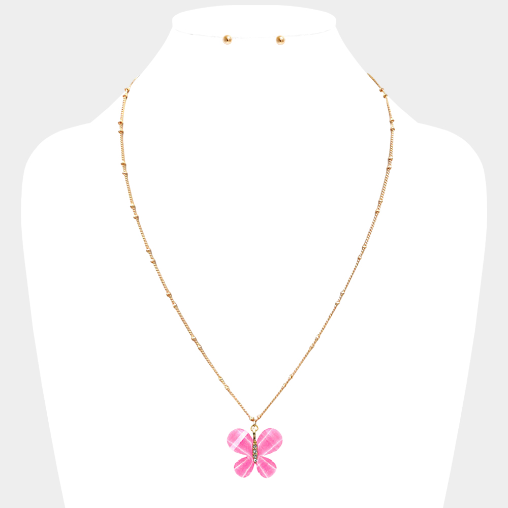 Rhinestone Embellished Butterfly Teardrop Stone Link Dangle Evening Earrings