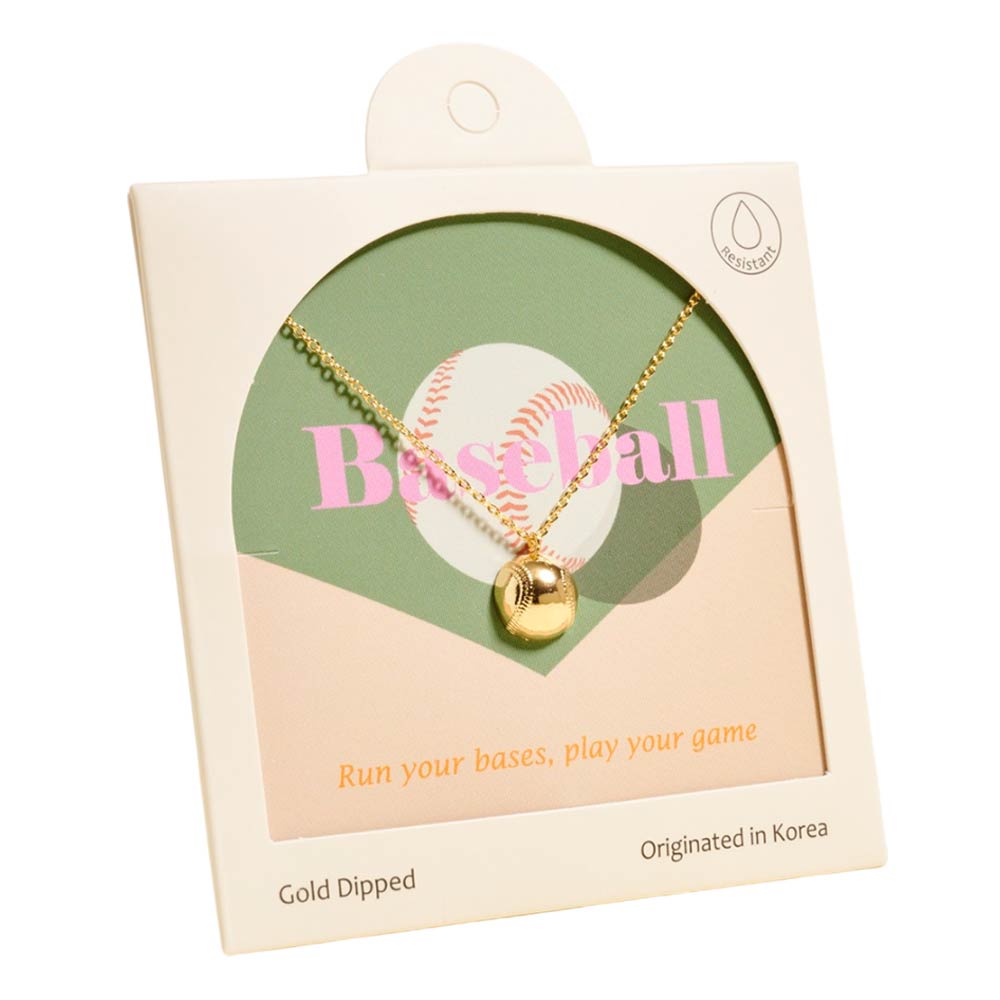 Details • Necklace Size : 16" + 2" L • Pendant Size : 0.4" X 0.4" • Sport-inspired pendant necklace featuring a classic baseball design that brings playful charm to everyday outfits. Ideal for game day looks, fan-focused collections, and giftable jewelry displays. A versatile statement piece for boutiques, sports themes, and casual seasonal accessories. • Gold Dipped • Hypoallergenic • Made In Korea