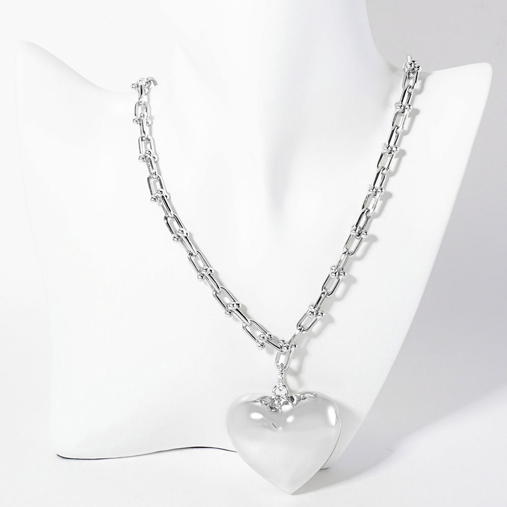 Details • Necklace Size : 18" + 1" L • Pendant Size : 1.8" X 1.8" • Eye-catching heart pendant necklace with a bold modern chain profile that elevates everyday styling or completes evening looks. Designed to sit beautifully at the neckline, it adds statement charm and effortless elegance worn solo or layered. • Gold Dipped • Lead and Nickel Compliant • Made In Korea