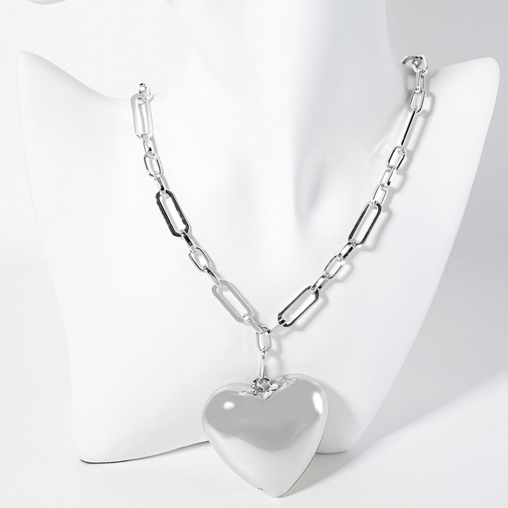 • Striking heart drop necklace paired with a modern elongated link chain for a standout finish. Designed to frame the neckline with polished impact, this statement piece elevates everyday outfits and adds confident glamour to evening and layered looks.