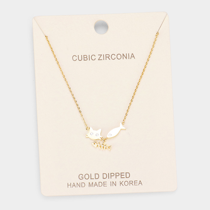 Gold Dipped Cubic Zirconia Cat Fish Pendant Necklace